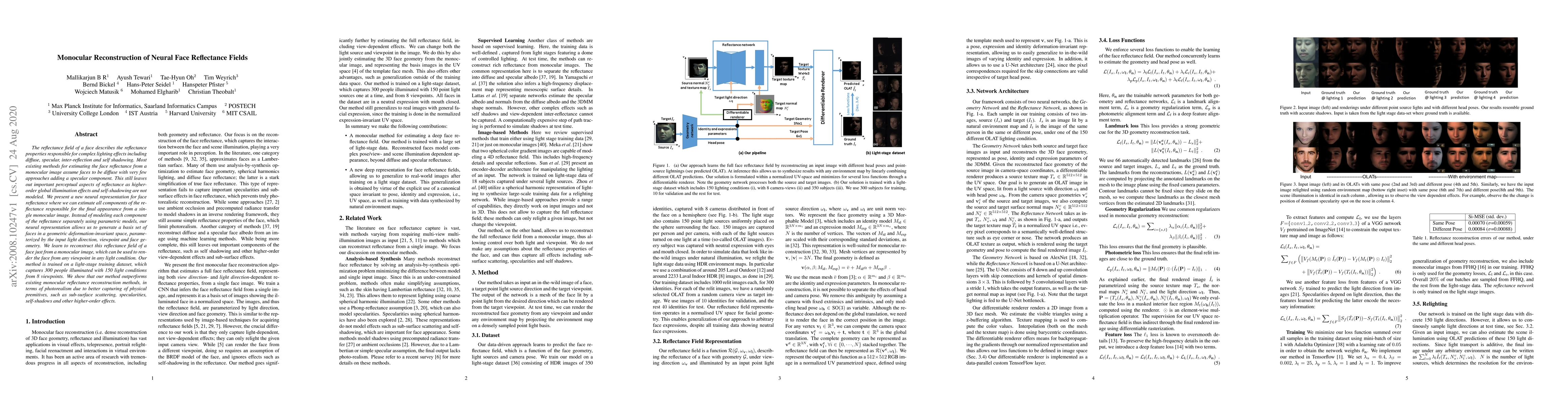 This paper introduces a neural representation for estimating the full reflectance field of a face from a single monocular image, capturing complex lighting effects like diffuse, specular, inter-reflection, and self-shadowing. The method outperforms existing techniques by better modeling physical properties and is trained on a comprehensive light-stage dataset.