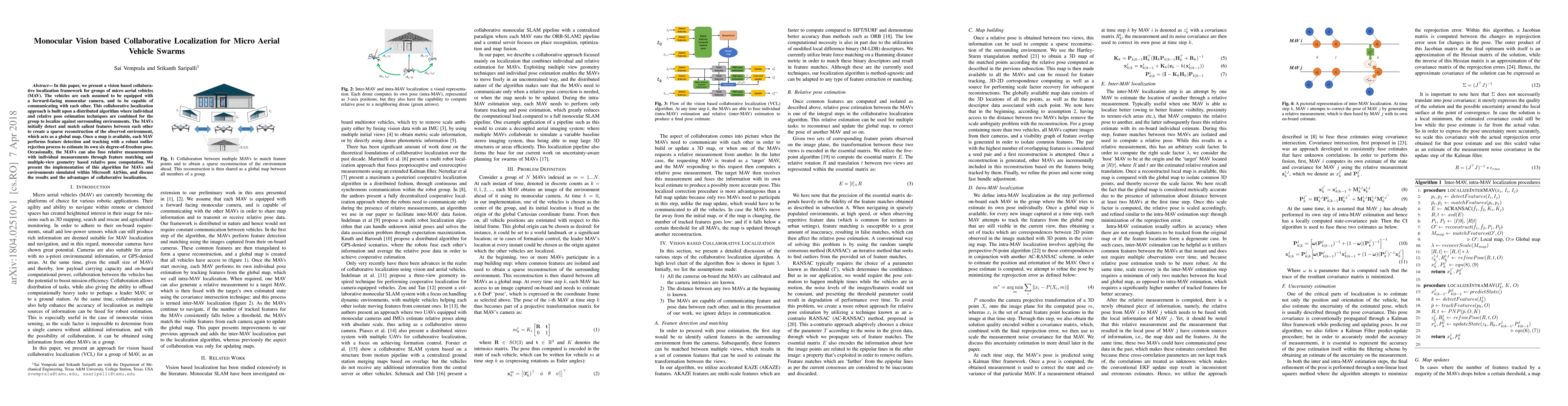 This paper introduces a collaborative localization framework for micro aerial vehicles using monocular vision, where MAVs detect and match features to create a global map and estimate their own poses through individual and relative pose estimation techniques. The approach is tested in simulated environments, demonstrating the benefits of collaborative localization.