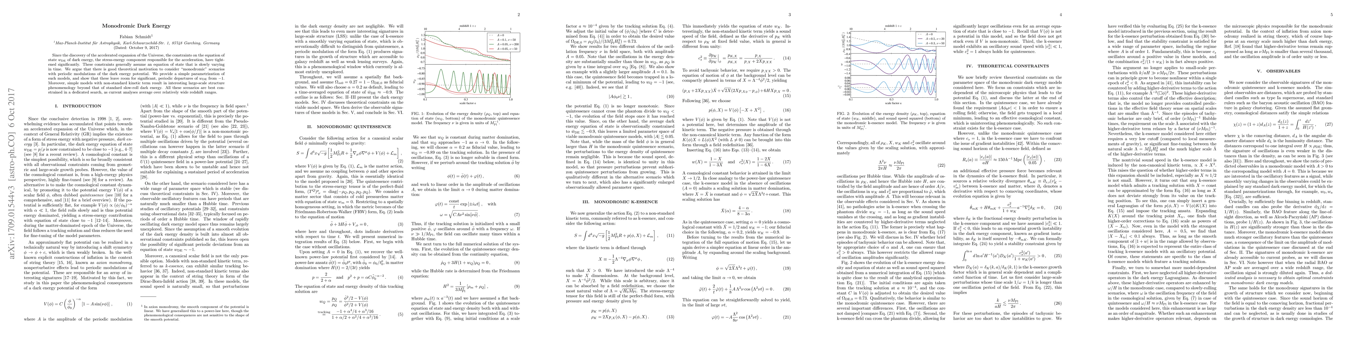 Since the discovery of the accelerated expansion of the Universe, the constraints on the equation of state $w_\text{DE}$ of dark energy, the stress-energy component responsible for the acceleration, have tightened significantly. These constraints generally assume an equation of state that is slowly varying in time. We argue that there is good theoretical motivation to consider "monodromic" scenarios with periodic modulations of the dark energy potential. We provide a simple parametrization of such models, and show that these leave room for significant, periodic departures of $w_\text{DE}$ from -1. Moreover, simple models with non-standard kinetic term result in interesting large-scale structure phenomenology beyond that of standard slow-roll dark energy. All these scenarios are best constrained in a dedicated search, as current analyses average over relatively wide redshift ranges.