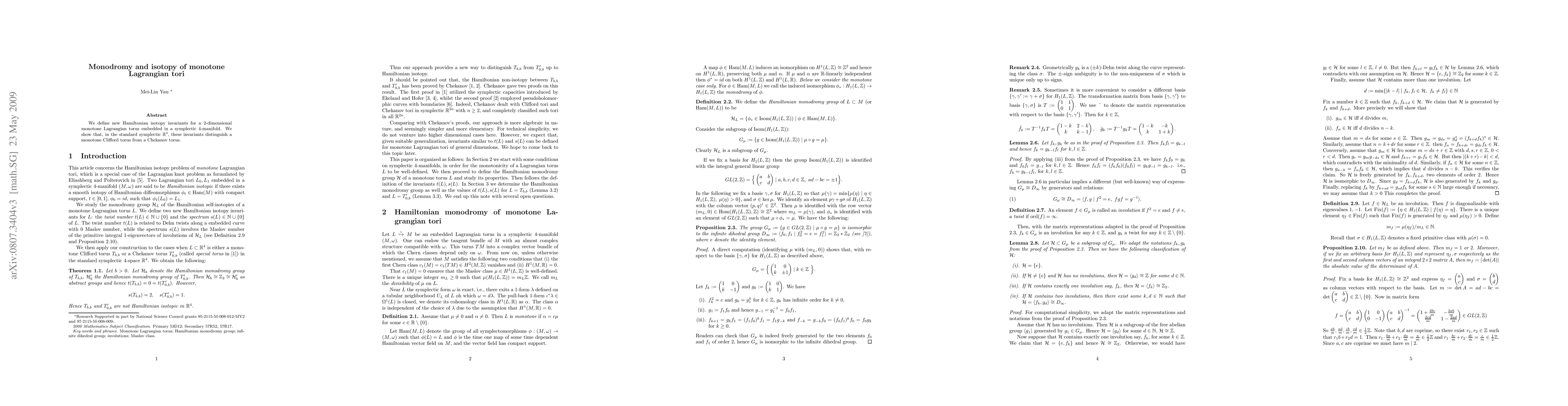 This research introduces new Hamiltonian isotopy invariants for distinguishing monotone Lagrangian tori in symplectic 4-manifolds. In the standard symplectic 4-space, these invariants differentiate a monotone Clifford torus from a Chekanov torus.