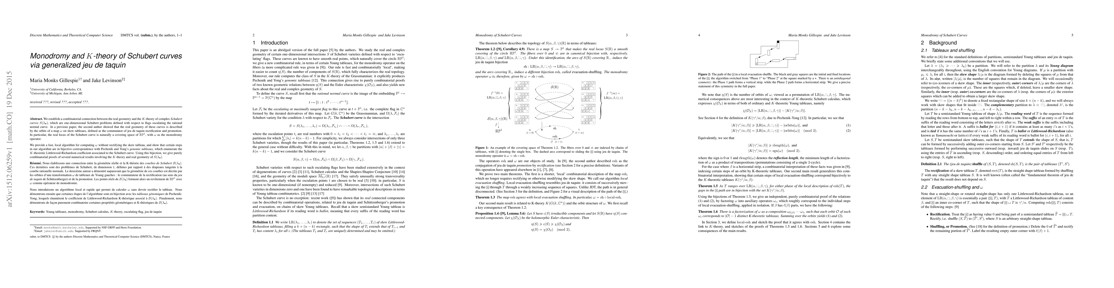 This paper establishes a combinatorial connection between the real geometry and $K$-theory of Schubert curves using generalized jeu de taquin, providing a fast algorithm for computing their monodromy operator and giving purely combinatorial proofs of numerical results.