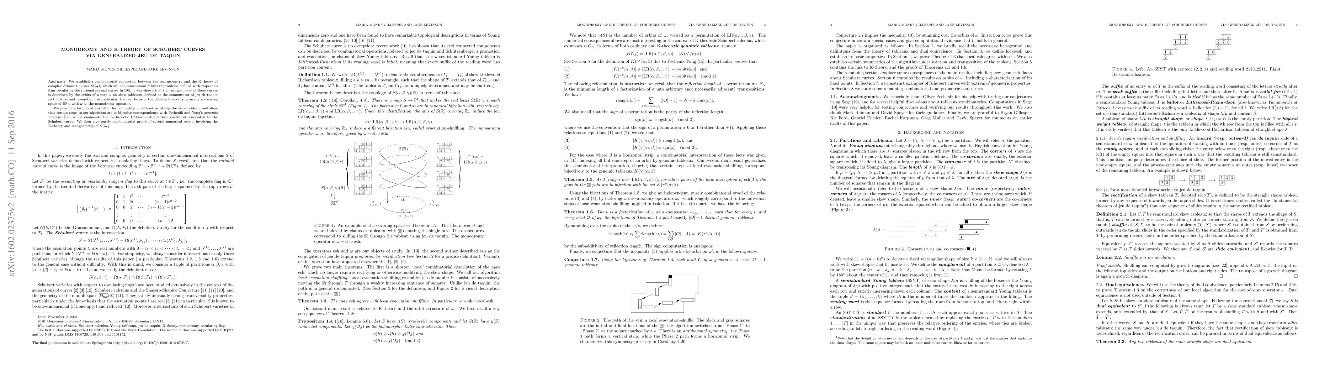 This paper establishes a combinatorial link between the real geometry of Schubert curves and their $K$-theory, using generalized jeu de taquin. It provides an algorithm to compute monodromy operators and demonstrates a bijective correspondence with genomic tableaux that enumerate $K$-theoretic Littlewood-Richardson coefficients.