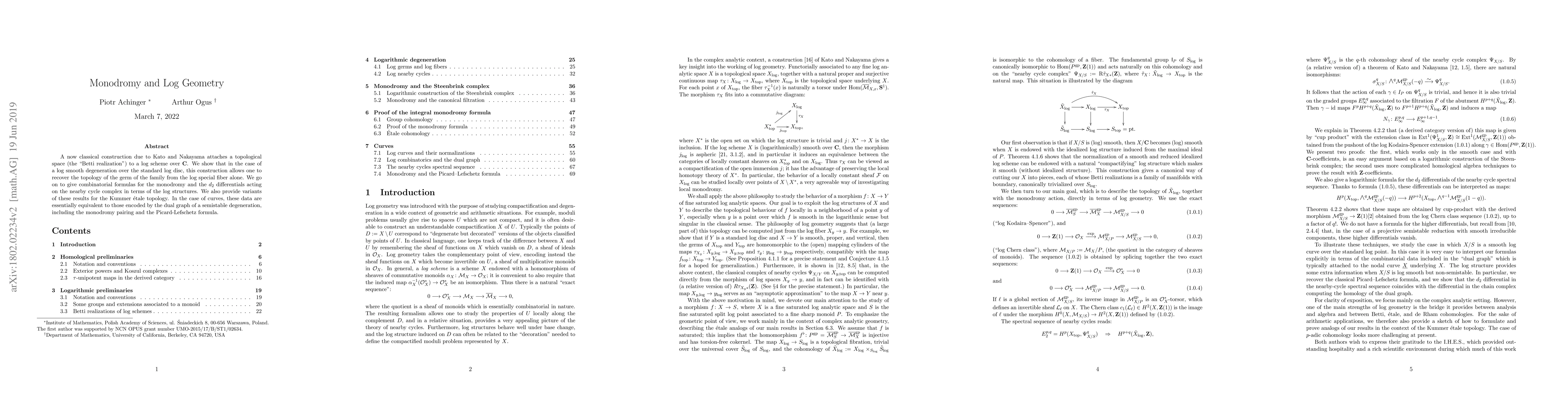 A now classical construction due to Kato and Nakayama attaches a topological space (the "Betti realization") to a log scheme over $\mathbf{C}$. We show that in the case of a log smooth degeneration over the standard log disc, this construction allows one to recover the topology of the germ of the family from the log special fiber alone. We go on to give combinatorial formulas for the monodromy and the $d^2$ differentials acting on the nearby cycle complex in terms of the log structures. We also provide variants of these results for the Kummer etale topology. In the case of curves, these data are essentially equivalent to those encoded by the dual graph of a semistable degeneration, including the monodromy pairing and the Picard-Lefschetz formula.