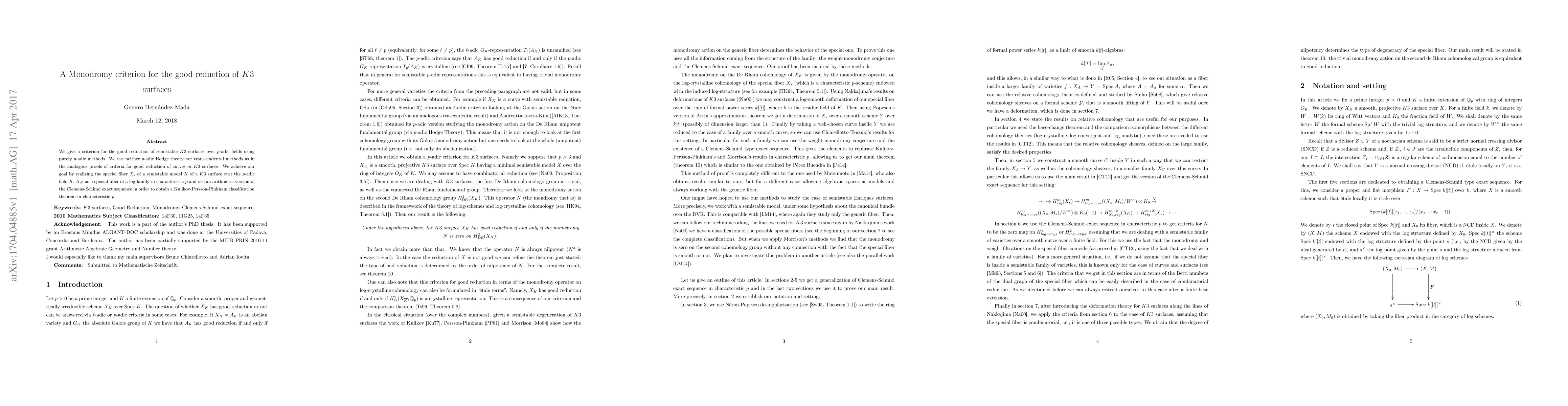 The paper presents a $p$-adic method for determining the good reduction of semistable $K3$ surfaces over $p$-adic fields, employing a log-family approach and an arithmetic version of the Clemens-Schmid exact sequence without using $p$-adic Hodge theory or transcendental methods.