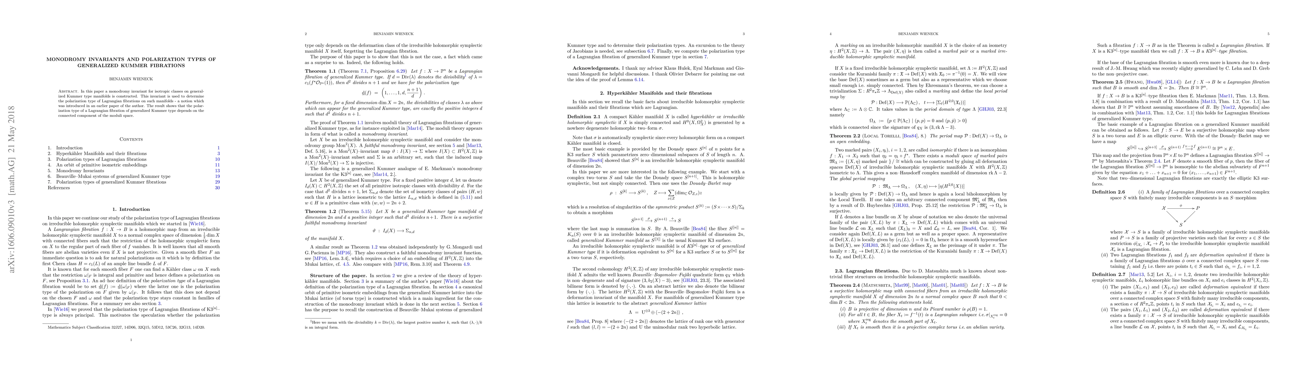 This paper constructs a monodromy invariant for isotropic classes on generalized Kummer manifolds, which is then used to determine the polarization type of their Lagrangian fibrations, revealing a dependency on the moduli space's connected component.