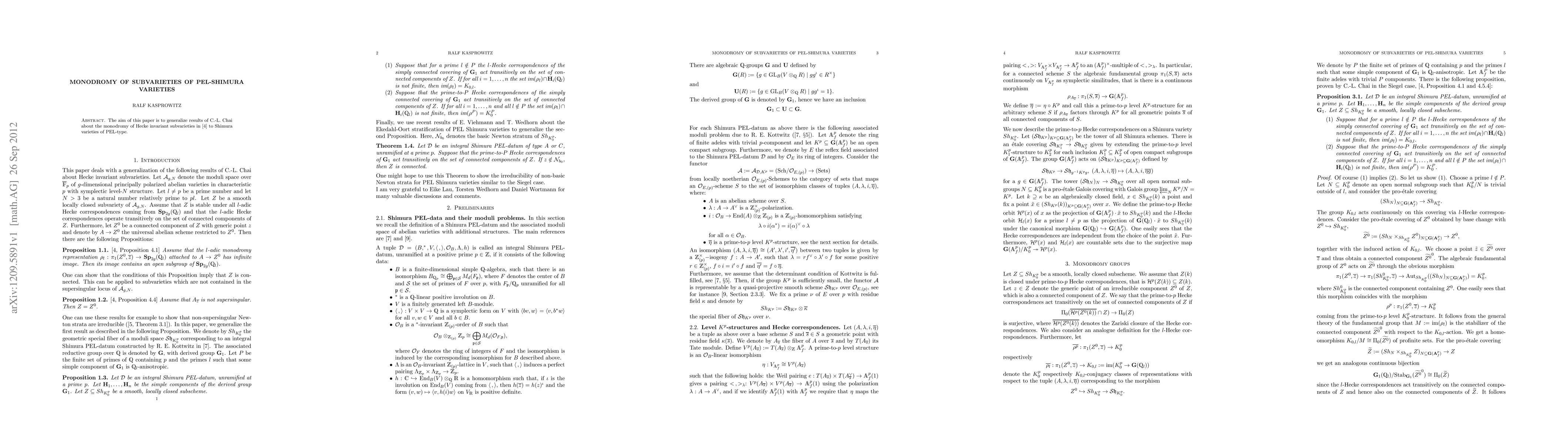The aim of this paper is to generalize results of C.-L. Chai about the monodromy of Hecke invariant subvarieties to Shimura varieties of PEL-type.
