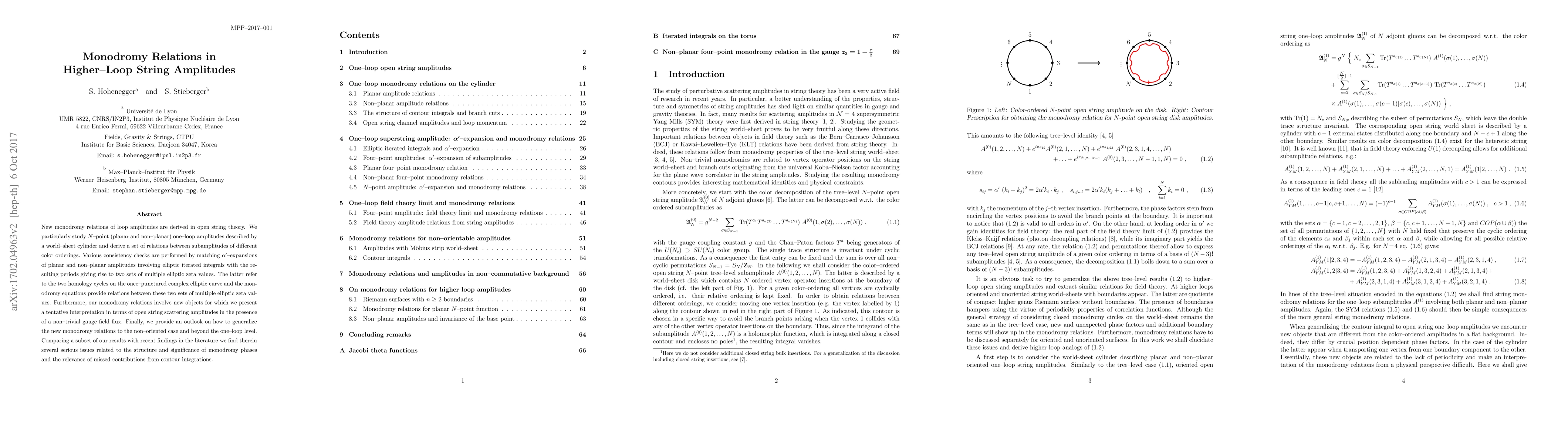 New monodromy relations of loop amplitudes are derived in open string theory. We particularly study N-point one-loop amplitudes described by a world-sheet cylinder (planar and non-planar) and derive a set of relations between subamplitudes of different color orderings. Various consistency checks are performed by matching alpha'-expansions of planar and non-planar amplitudes involving elliptic iterated integrals with the resulting periods giving rise to two sets of multiple elliptic zeta values. The latter refer to the two homology cycles on the once-punctured complex elliptic curve and the monodromy equations provide relations between these two sets of multiple elliptic zeta values. Furthermore, our monodromy relations involve new objects for which we present a tentative interpretation in terms of open string scattering amplitudes in the presence of a non-trivial gauge field flux. Finally, we provide an outlook on how to generalize the new monodromy relations to the non-oriented case and beyond the one-loop level. Comparing a subset of our results with recent findings in the literature we find therein several serious issues related to the structure and significance of monodromy phases and the relevance of missed contributions from contour integrations.