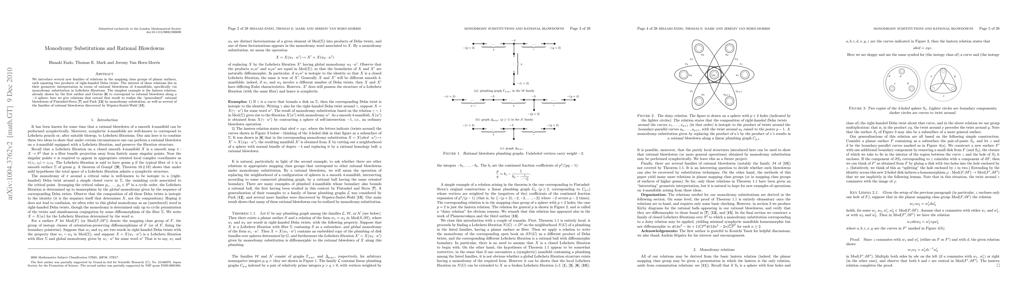 We introduce several new families of relations in the mapping class groups of planar surfaces, each equating two products of right-handed Dehn twists. The interest of these relations lies in their geometric interpretation in terms of rational blowdowns of 4-manifolds, specifically via monodromy substitution in Lefschetz fibrations. The simplest example is the lantern relation, already shown by the first author and Gurtas to correspond to rational blowdown along a -4 sphere; here we give relations that extend that result to realize the "generalized" rational blowdowns of Fintushel-Stern and Park by monodromy subsitution, as well as several of the families of rational blowdowns discovered by Stipsicz-Szab\'o-Wahl.