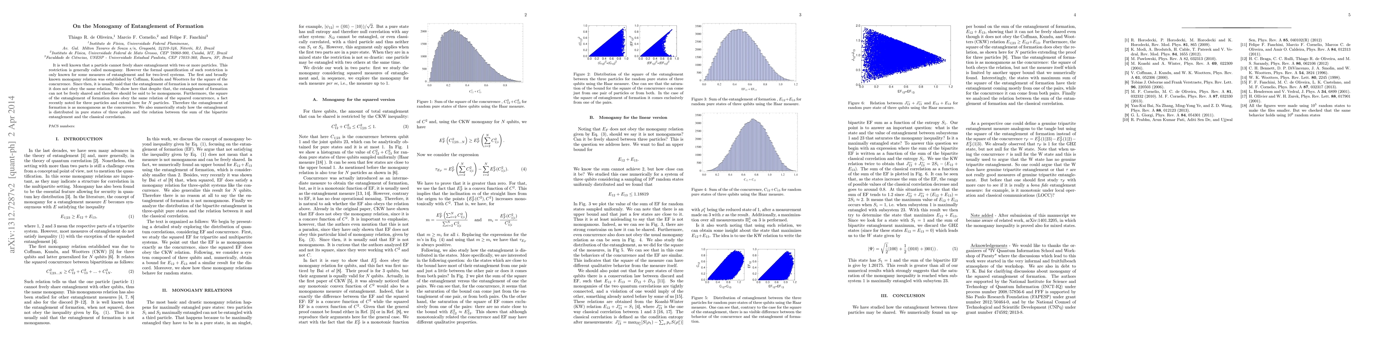 It is well known that a particle cannot freely share entanglement with two or more particles. This restriction is generally called monogamy. However the formal quantification of such restriction is only known for some measures of entanglement and for two-level systems. The first and broadly known monogamy relation was established by Coffman, Kundu, and Wootters for the square of the concurrence. Since then, it is usually said that the entanglement of formation is not monogamous, as it does not obey the same relation. We show here that despite that, the entanglement of formation cannot be freely shared and therefore should be said to be monogamous. Furthermore, the square of the entanglement of formation does obey the same relation of the squared concurrence, a fact recently noted for three particles and extended here for N particles. Therefore the entanglement of formation is as monogamous as the concurrence. We also numerically study how the entanglement is distributed in pure states of three qubits and the relation between the sum of the bipartite entanglement and the classical correlation.