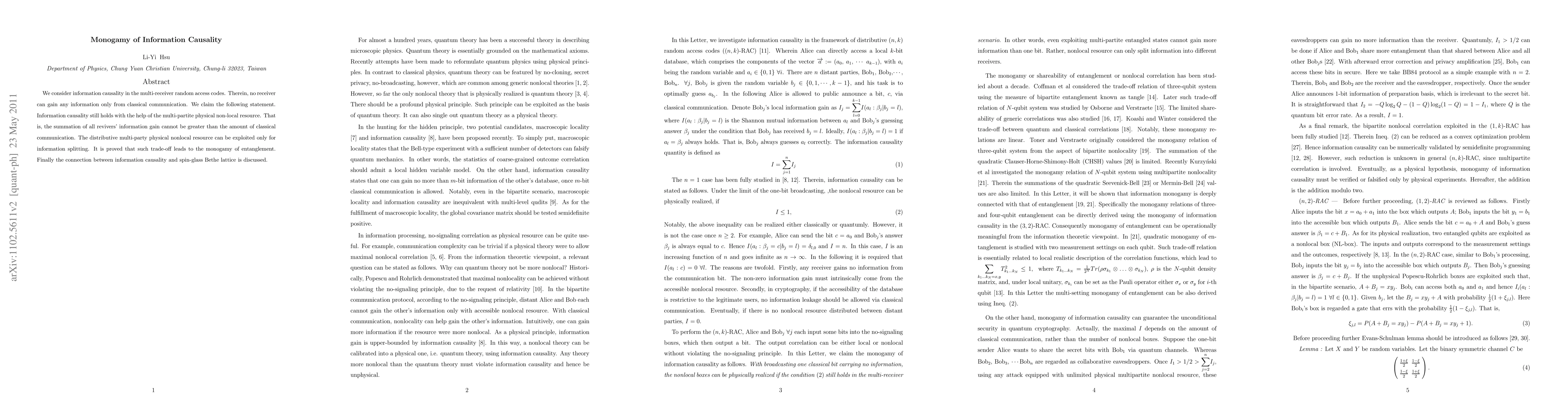 We consider the information causality in the multi-receiver random access codes. Therein, no receiver can gain any information only from classical communication. We claim the following statement. Information causality still holds even with the help of the multi-partite physical non-local resource. That is, the summation of all revivers' information gain cannot be greater than the amount of classical communication. The distributive multi-party physical nonlocal resource can be exploited only for information splitting. It is proved that such trade-off leads to the monogamy of entanglement. Finally the connection between information causality and spin-glass Bethe lattice is discussed.