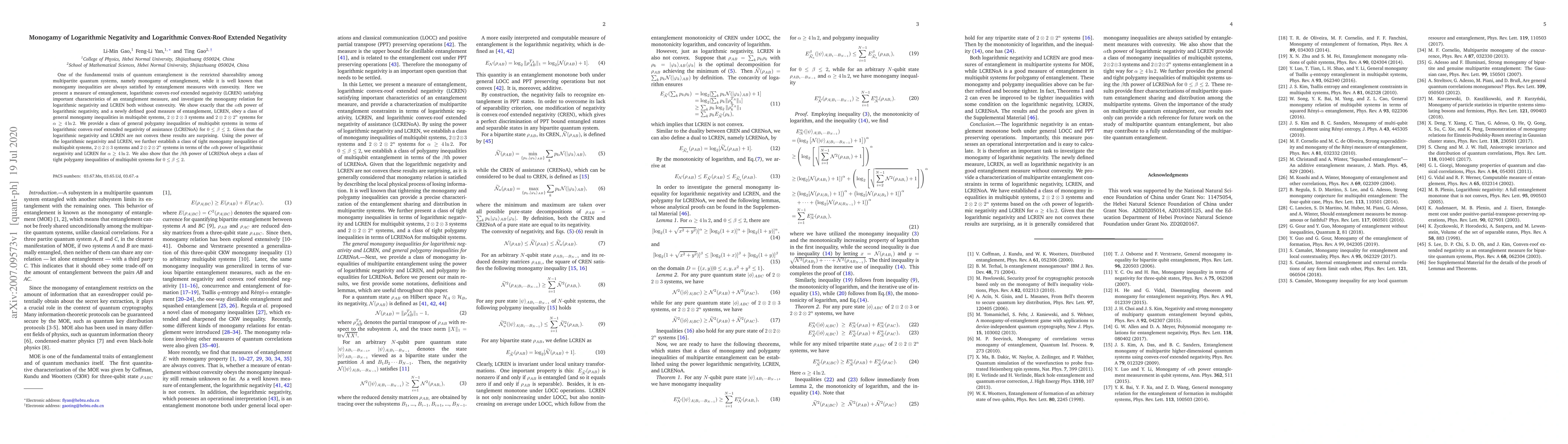 One of the fundamental traits of quantum entanglement is the restricted shareability among multipartite quantum systems, namely monogamy of entanglement, while it is well known that monogamy inequalities are always satisfied by entanglement measures with convexity. Here we present a measure of entanglement, logarithmic convex-roof extended negativity (LCREN) satisfying important characteristics of an entanglement measure, and investigate the monogamy relation for logarithmic negativity and LCREN both without convexity. We show exactly that the $\alpha$th power of logarithmic negativity, and a newly defined good measure of entanglement, LCREN, obey a class of general monogamy inequalities in multiqubit systems, $2\otimes2\otimes3$ systems and $2\otimes2\otimes2^{n}$ systems for $\alpha\geq4\ln2$. We provide a class of general polygamy inequalities of multiqubit systems in terms of logarithmic convex-roof extended negativity of assistance (LCRENoA) for $0\leq\beta\leq2$. Given that the logarithmic negativity and LCREN are not convex these results are surprising. Using the power of the logarithmic negativity and LCREN, we further establish a class of tight monogamy inequalities of multiqubit systems, $2\otimes2\otimes3$ systems and $2\otimes2\otimes2^{n}$ systems in terms of the $\alpha$th power of logarithmic negativity and LCREN for $\alpha\geq4\ln2$. We also show that the $\beta$th power of LCRENoA obeys a class of tight polygamy inequalities of multiqubit systems for $0\leq\beta\leq2$.