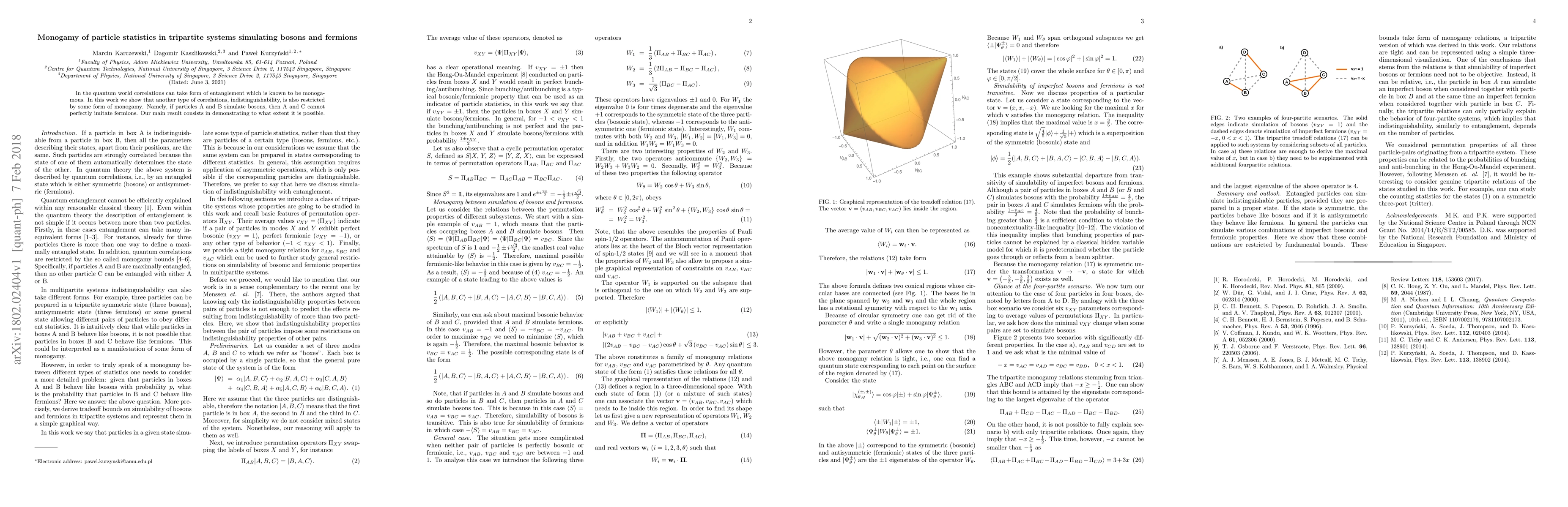 This research reveals that particle indistinguishability, analogous to bosons and fermions, is also subject to a form of monogamy. It demonstrates the limitations of particles A and C perfectly mimicking fermions when particles A and B simulate bosons.