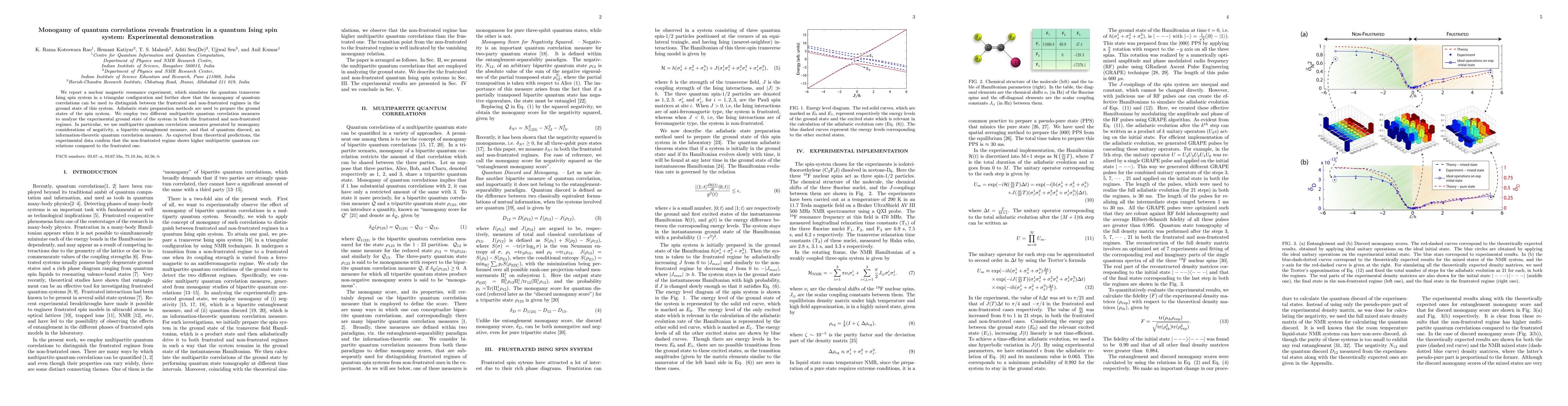 Researchers demonstrate a new method to distinguish between frustrated and non-frustrated quantum systems using monogamy of quantum correlations. The experiment shows higher multipartite quantum correlations in the non-frustrated regime.