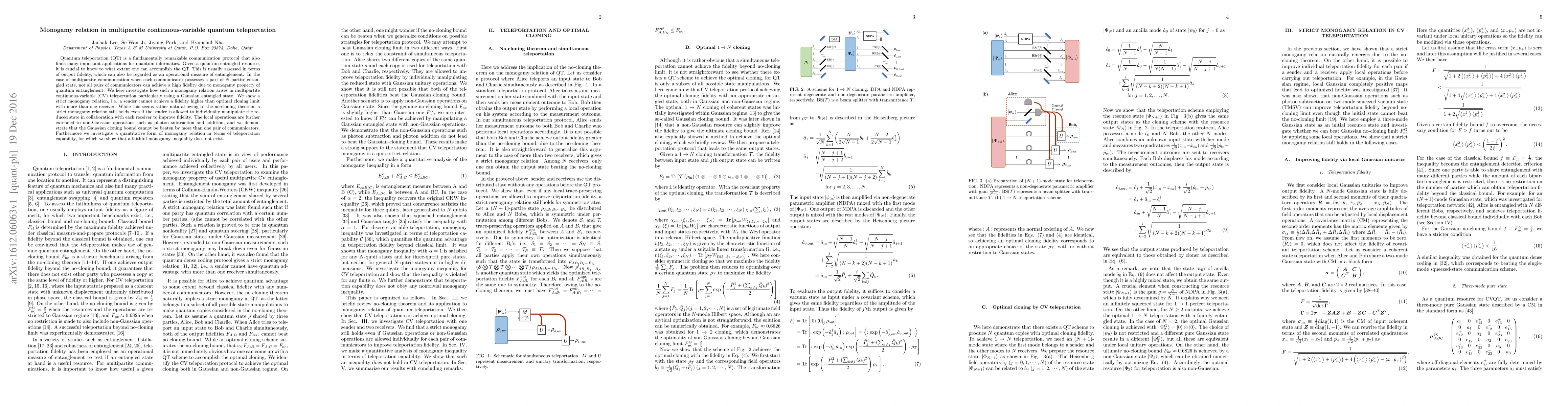 This paper investigates the monogamy relation in multipartite continuous-variable quantum teleportation, demonstrating that a strict monogamy relation holds even when the sender manipulates the state collaboratively with multiple receivers. It shows that no pair can achieve fidelity beyond the optimal cloning limit, regardless of local operations, reinforcing the no-cloning theorem.