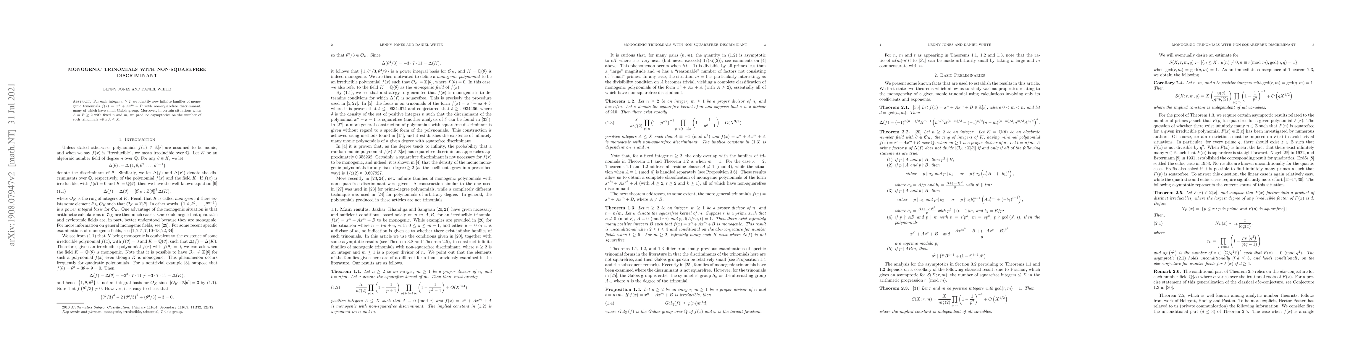 This paper identifies new infinite families of monogenic trinomials $f(x)=x^n+Ax^m+B$ with non-squarefree discriminants, differing from previous studies. It also provides asymptotics for the number of such trinomials with $A\le X$ when $A=B\ge 2$ and $n$ and $m$ are fixed.