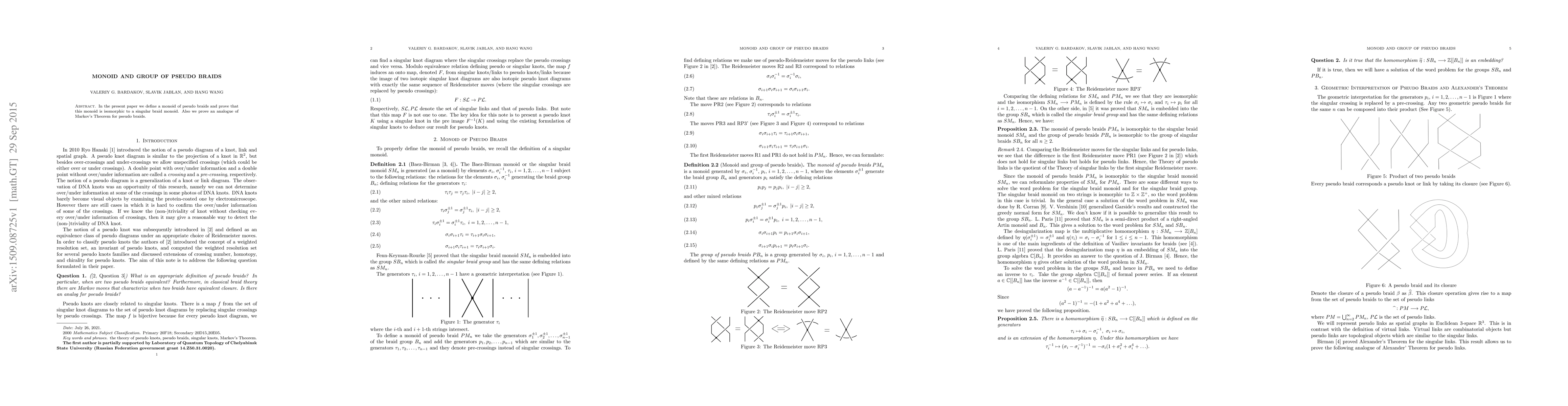 This paper introduces a monoid of pseudo braids and proves its isomorphism to a singular braid monoid, as well as an analogue of Markov's theorem for pseudo braids.