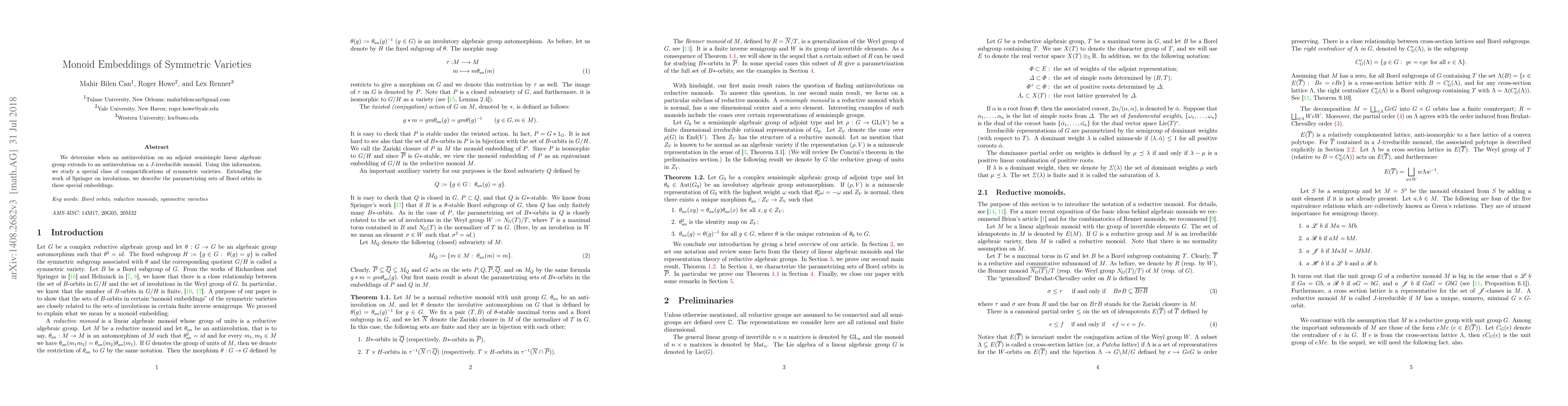 This paper investigates conditions under which antiinvolutions on adjoint semisimple groups extend to $J$-irreducible monoids, and uses this to study special compactifications of symmetric varieties, extending Springer's work on involutions and describing Borel orbit parametrizing sets in these embeddings.