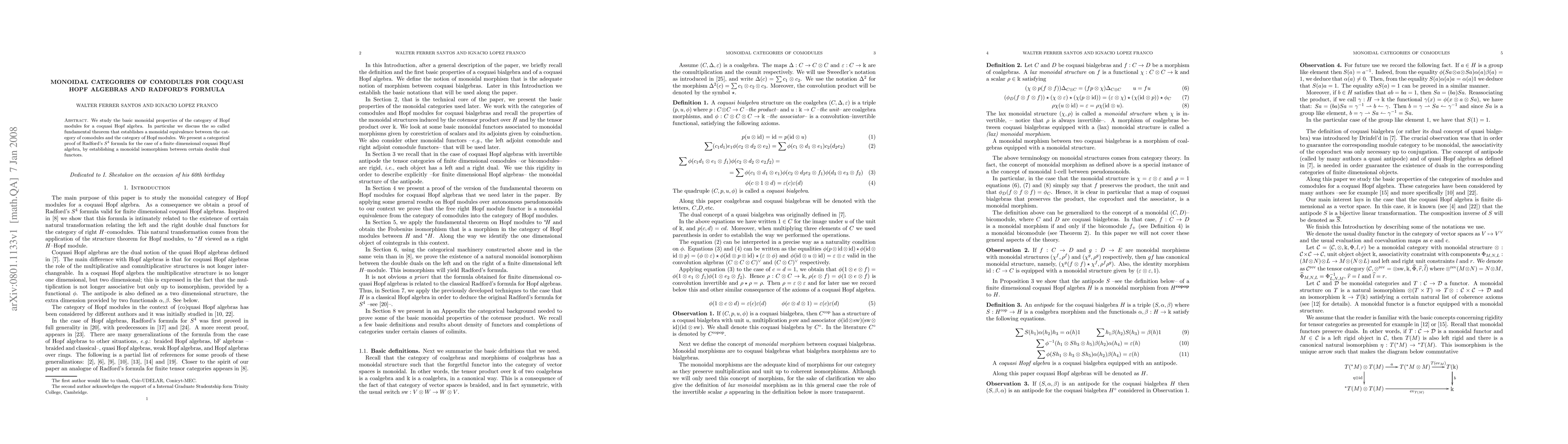 We study the basic monoidal properties of the category of Hopf modules for a coquasi Hopf algebra. In particular we discuss the so called fundamental theorem that establishes a monoidal equivalence between the category of comodules and the category of Hopf modules. We present a categorical proof of Radford's $S^4$ formula for the case of a finite dimensional coquasi Hopf algebra, by establishing a monoidal isomorphism between certain double dual functors.