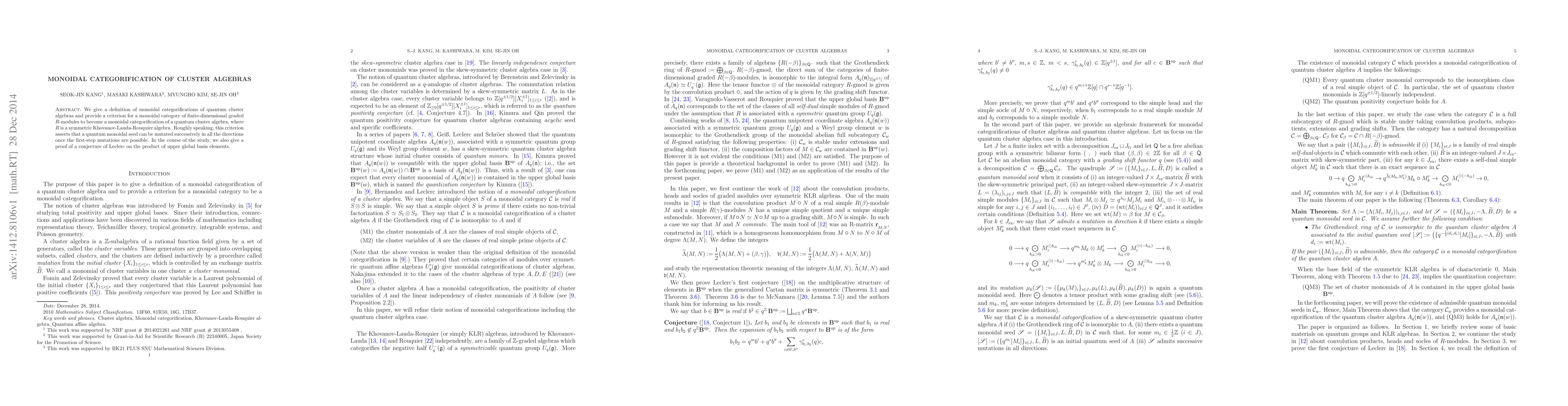 This paper defines monoidal categorifications of quantum cluster algebras and establishes a criterion for a monoidal category of finite-dimensional graded modules to serve as such a categorification. It also proves a conjecture by Leclerc regarding the product of upper global basis elements.