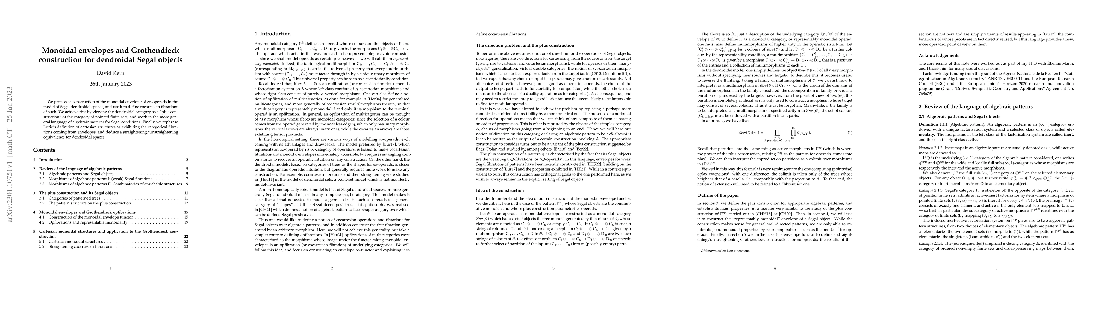 This paper constructs the monoidal envelope of $\infty$-operads in Segal dendroidal spaces, enabling the definition of cocartesian fibrations. It employs a "plus construction" of pointed finite sets and uses algebraic patterns to achieve this within a generalized framework.