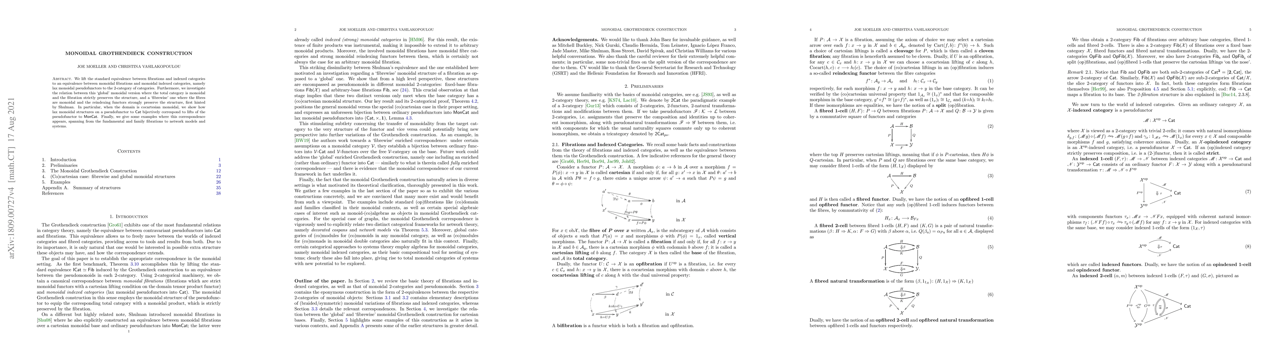The paper establishes an equivalence between monoidal fibrations and monoidal indexed categories through weak monoidal pseudofunctors, exploring the distinction between global and fibrewise monoidal structures. It also shows that lax monoidal structures on functors correspond to lifts to monoidal categories when the domain is cocartesian monoidal, with illustrative examples across various categories.