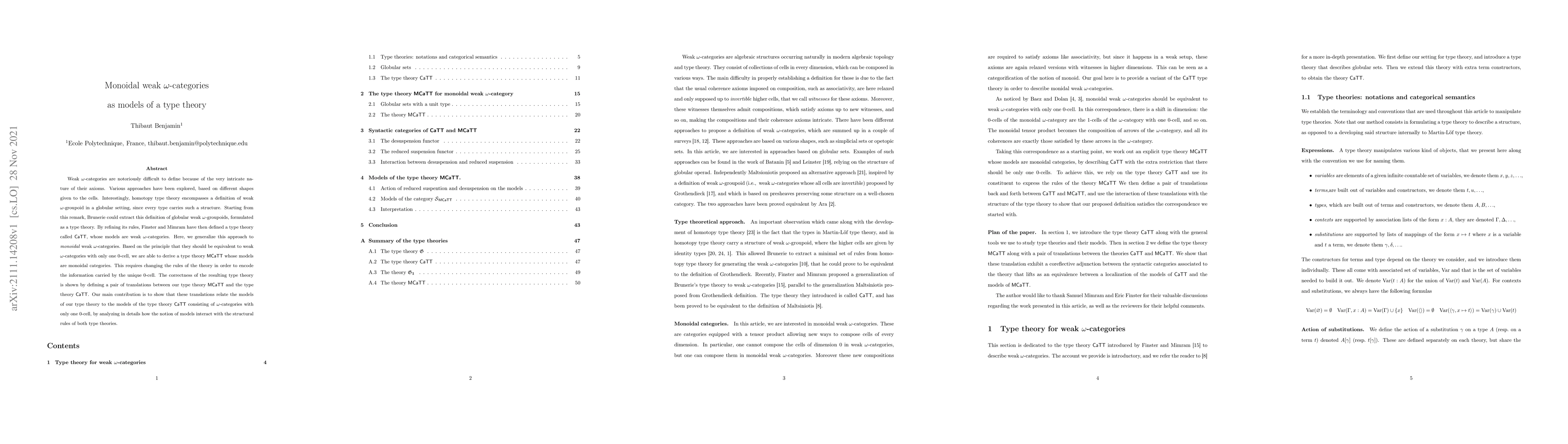 This paper develops a type theory, MCaTT, to model monoidal weak $\omega$-categories, refining the existing CaTT type theory. It establishes equivalences between models of MCaTT and monoidal categories, ensuring correctness through detailed translations and interactions between the structural rules of both type theories.