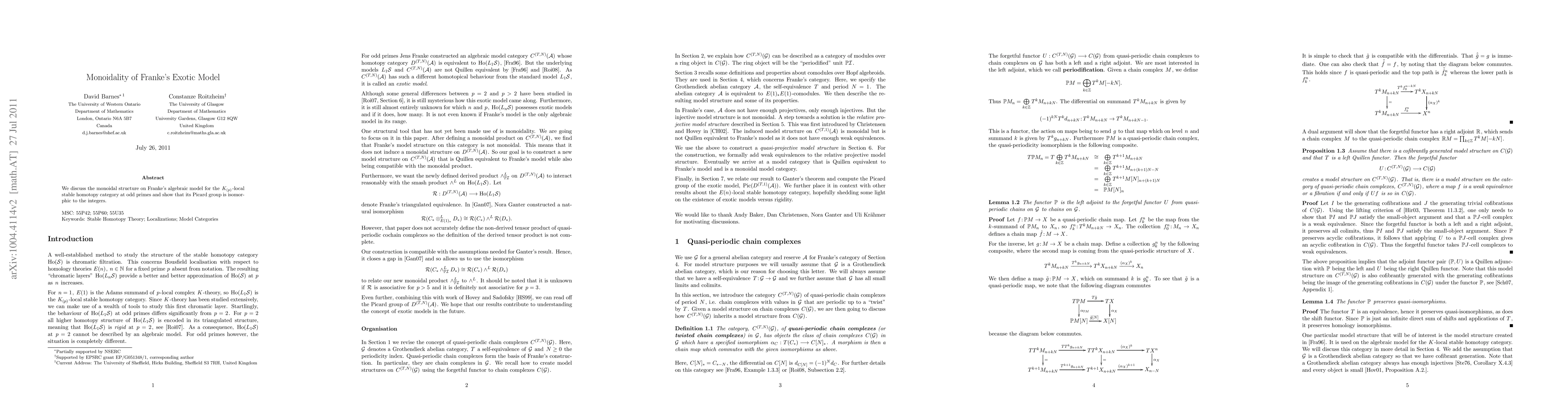 We discuss the monoidal structure on Franke's algebraic model for the $K_{(p)}$-local stable homotopy category at odd primes and show that its Picard group is isomorphic to the integers.