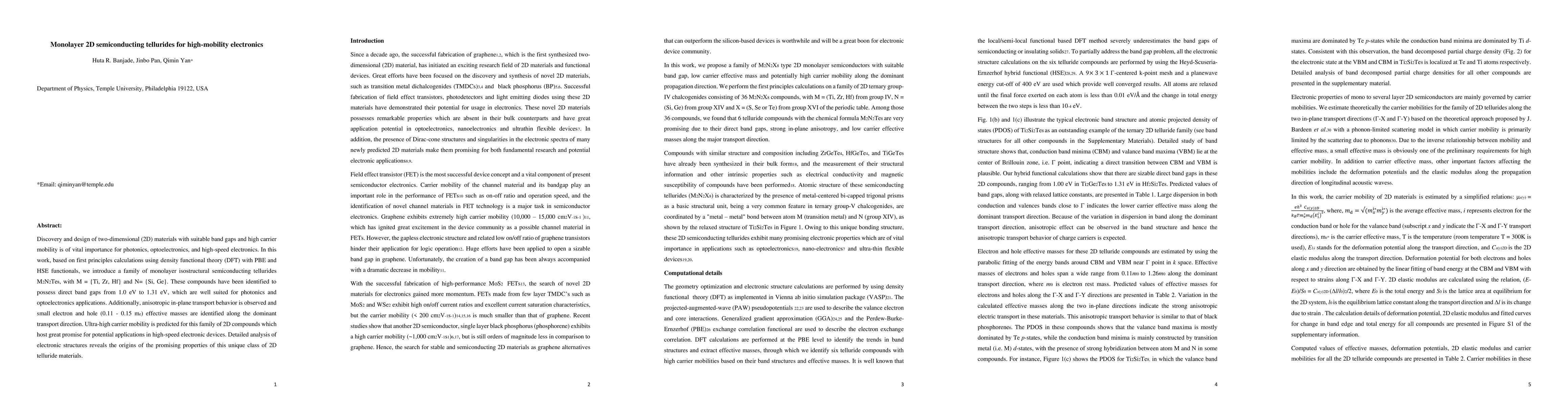Researchers discovered a family of monolayer semiconducting tellurides with direct band gaps suitable for photonics and optoelectronics applications. These 2D compounds exhibit ultra-high carrier mobility, promising high-speed electronic devices.