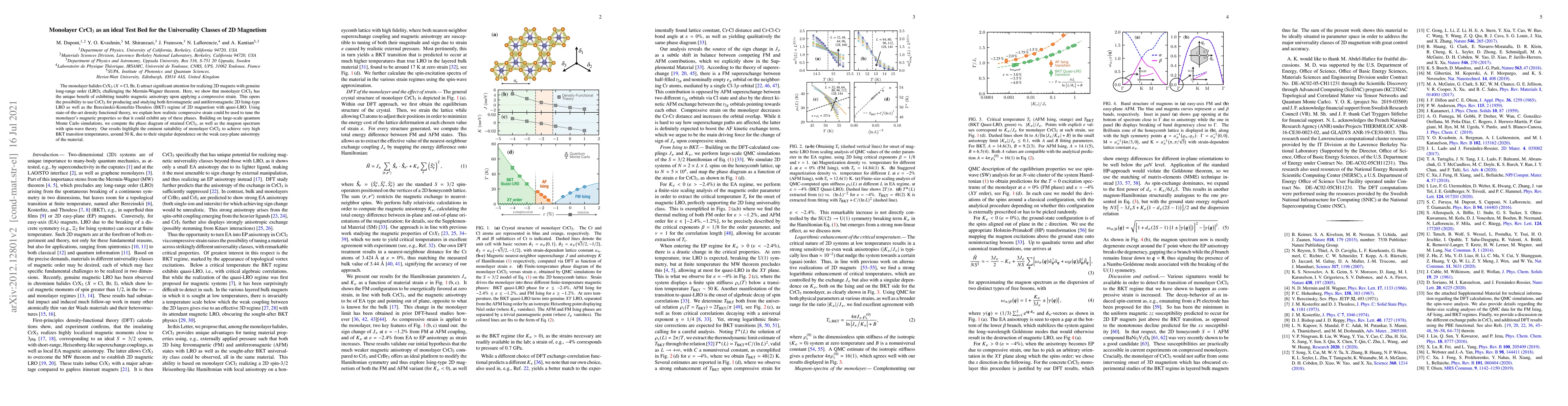 Monolayer CrCl$_3$ exhibits tunable magnetic anisotropy under compressive strain, allowing it to explore various 2D magnetism phases, including ferromagnetic, antiferromagnetic, and BKT regimes. Density functional theory and quantum Monte Carlo simulations reveal its potential to achieve high BKT transition temperatures, around 50 K.