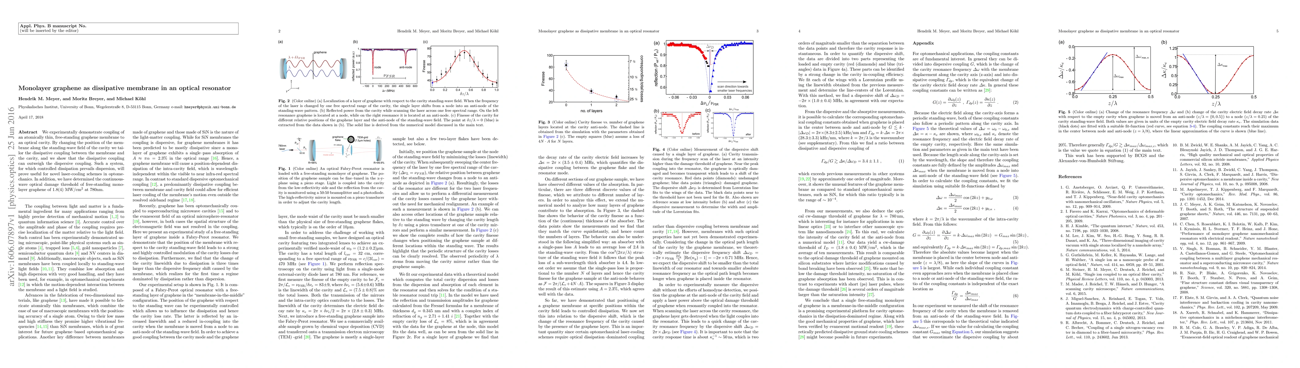 This paper demonstrates the coupling of a graphene membrane to an optical cavity, showing that controlled dissipation can surpass dispersive coupling, which is beneficial for laser-cooling schemes in optomechanics. The study also reports a continuous-wave optical damage threshold of 1.8(4) MW/cm² for monolayer graphene at 780 nm.