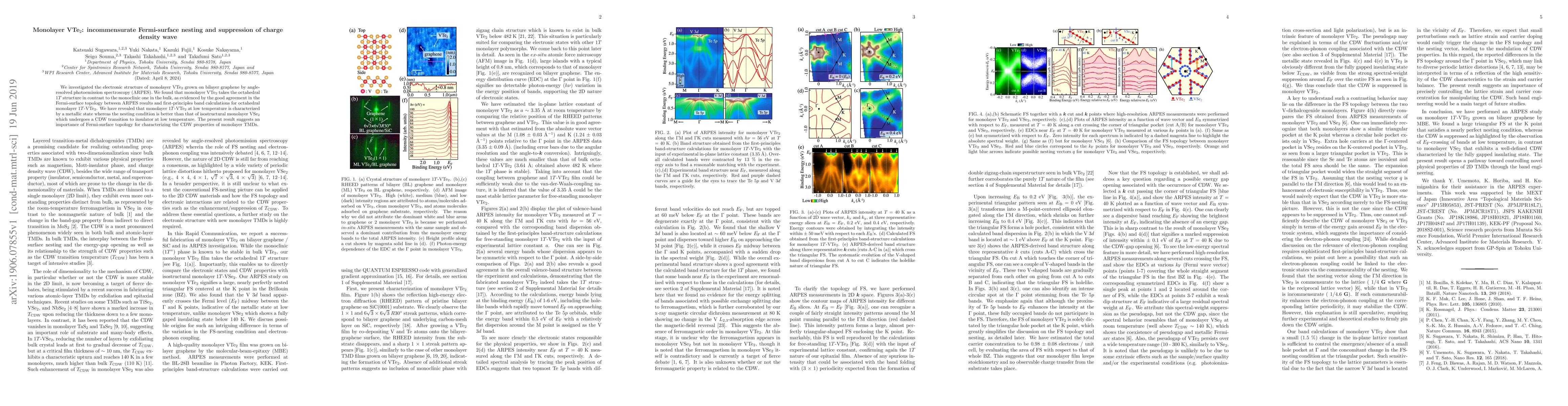 This study reveals that monolayer VTe2 adopts an octahedral 1T structure, showing better incommensurate Fermi surface nesting than VSe2, which suppresses charge density wave formation and maintains metallic conductivity at low temperatures. The findings highlight the significance of Fermi surface topology in determining charge density wave properties in transition metal dichalcogenides.