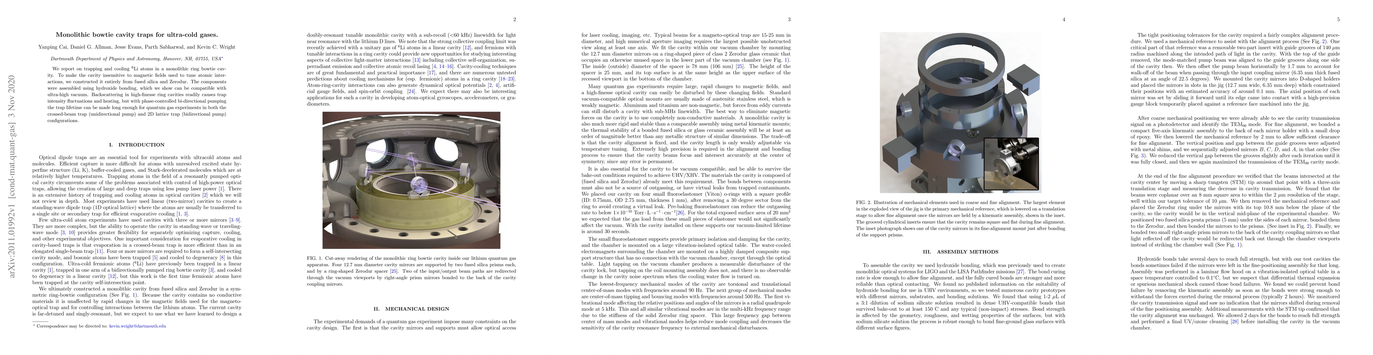 We report on trapping and cooling Li-6 atoms in a monolithic ring bowtie cavity. To make the cavity insensitive to magnetic fields used to tune atomic interactions, we constructed it entirely from fused silica and Zerodur. The components were assembled using hydroxide bonding, which we show can be compatible with ultra-high vacuum. Backscattering in high-finesse ring cavities readily causes trap intensity fluctuations and heating, but with phase-controlled bi-directional pumping the trap lifetime can be made long enough for quantum gas experiments in both the crossed-beam trap (unidirectional pump) and 2D lattice trap (bidirectional pump) configurations.