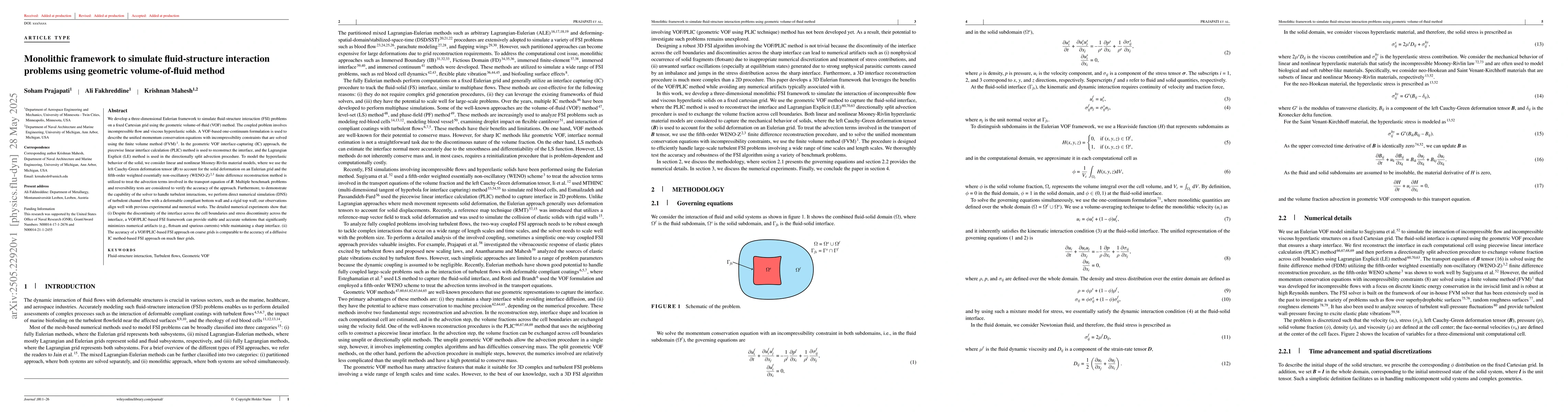 The development of a monolithic framework combining geometric VOF method and finite volume method for accurate and stable FSI simulations on fixed Cartesian grids.