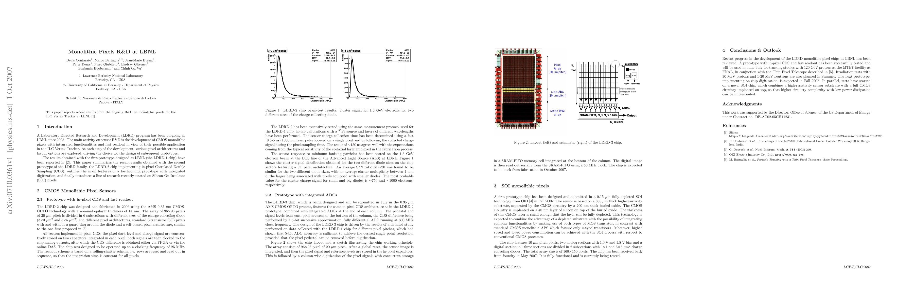 This paper reports recent results from the ongoing R&D on monolithic pixels for the ILC Vertex Tracker at LBNL.