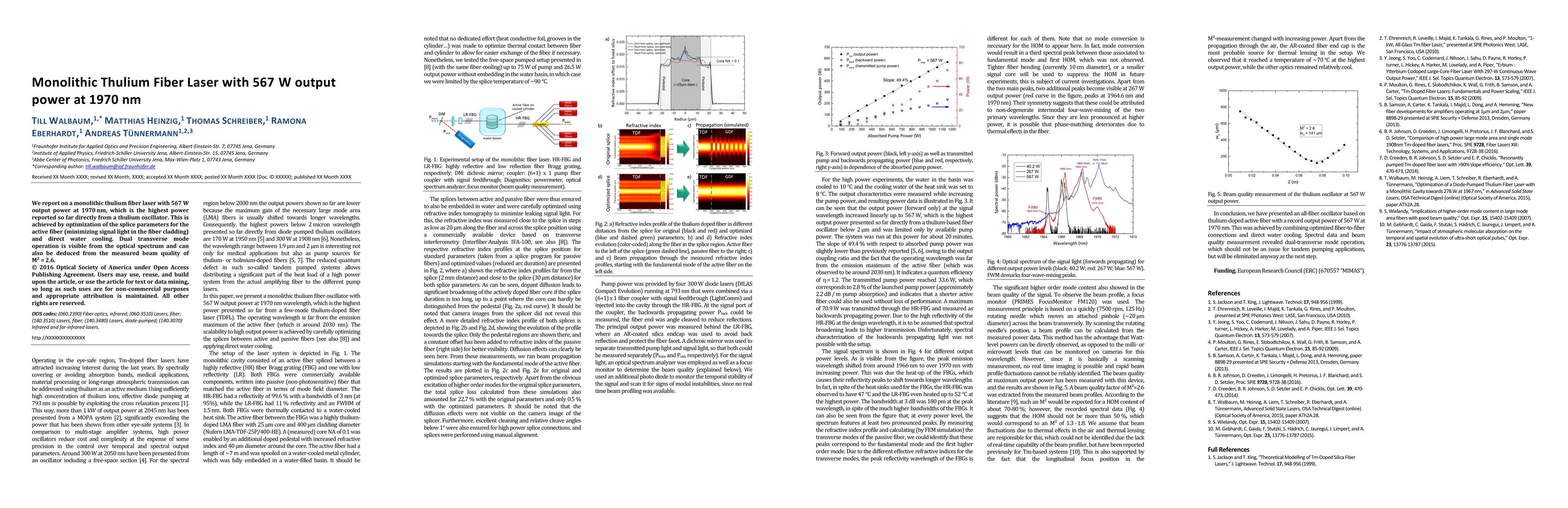 The paper introduces an optimized monolithic thulium fiber laser design, emphasizing splice parameter optimization and direct water cooling for high output power.