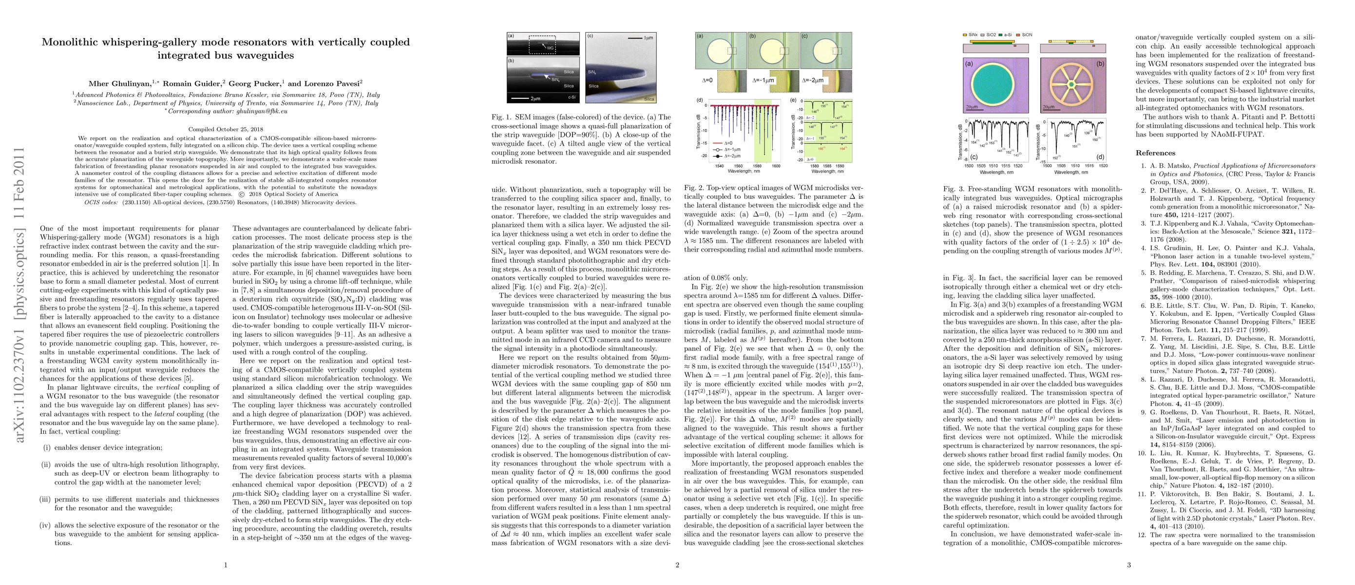 This paper details the development of a CMOS-compatible silicon-based microresonator system with vertically coupled integrated bus waveguides, showcasing high optical quality due to precise planarization. The study also highlights wafer-scale fabrication of suspended resonators, enabling precise mode excitation and potential for advanced optomechanical applications.