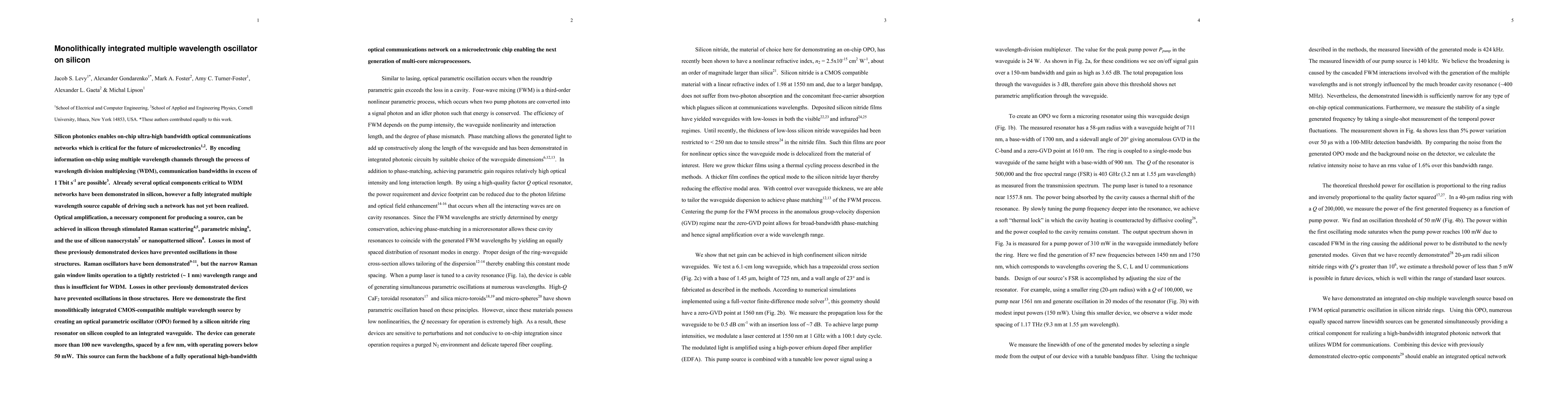 This breakthrough achieves a long-sought goal in the field of silicon photonics, paving the way for next-generation multi-core microprocessors and ultra-high bandwidth optical communications networks.