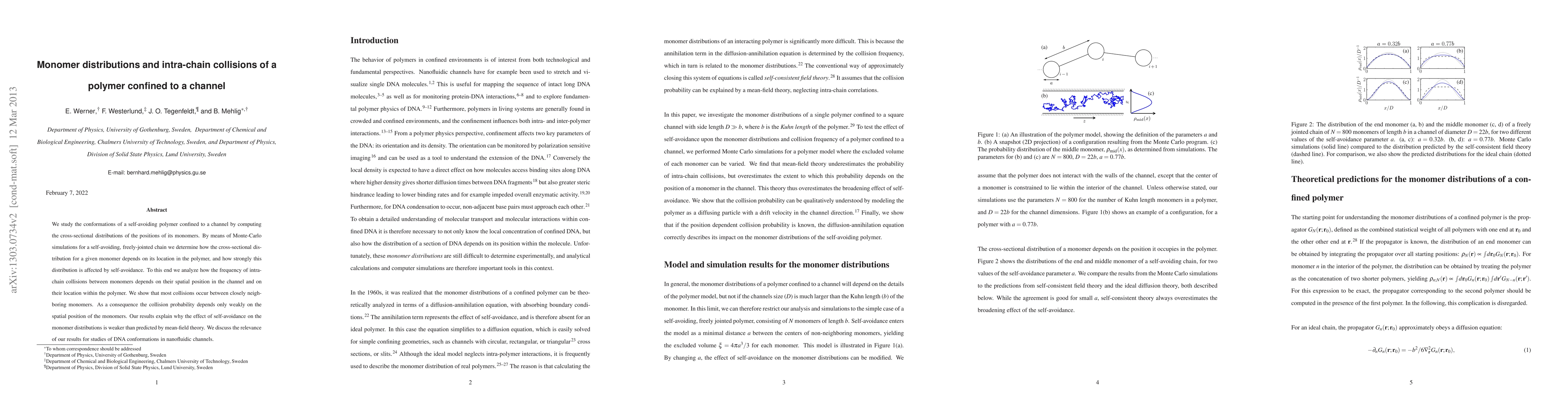 We study the conformations of a self-avoiding polymer confined to a channel by computing the cross-sectional distributions of the positions of its monomers. By means of Monte-Carlo simulations for a self-avoiding, freely-jointed chain we determine how the cross-sectional distribution for a given monomer depends on its location in the polymer, and how strongly this distribution is affected by self avoidance. To this end we analyze how the frequency of intra-chain collisions between monomers depends on their spatial position in the channel and on their location within the polymer. We show that most collisions occur between closely neighboring monomers. As a consequence the collision probability depends only weakly on the spatial position of the monomers. Our results explain why the effect of self-avoidance on the monomer distributions is weaker than predicted by mean-field theory. We discuss the relevance of our results for studies of DNA conformations in nanofluidic channels.
