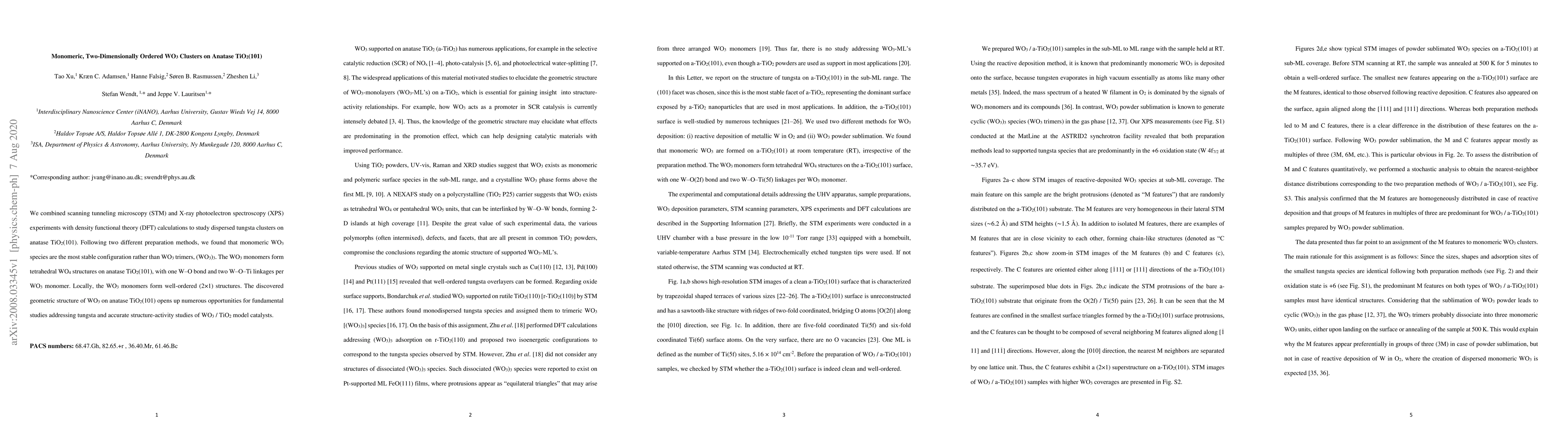 This study reveals that monomeric WO$_3$ clusters form stable, two-dimensionally ordered tetrahedral WO$_4$ structures on anatase TiO$_2$(101) via STM, XPS, and DFT analysis, providing a foundation for future research on WO$_3$/TiO$_2$ catalysts.