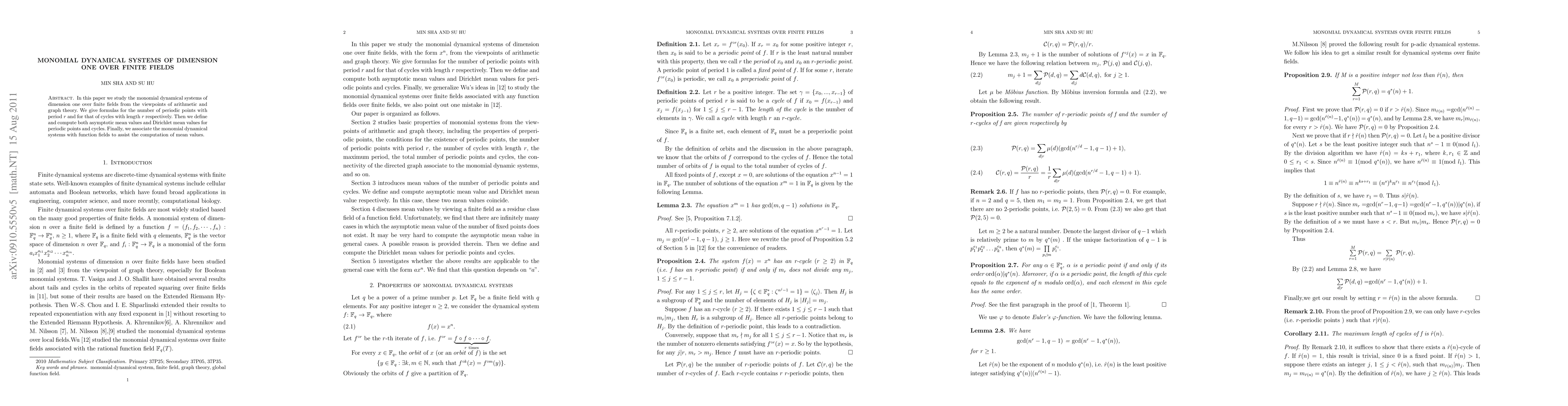 This paper investigates monomial dynamical systems of dimension one over finite fields, focusing on their periodic points and cycles. It provides formulas for the count of periodic points and cycles of specific lengths, and computes their natural and Dirichlet distributions, linking these systems to function fields.