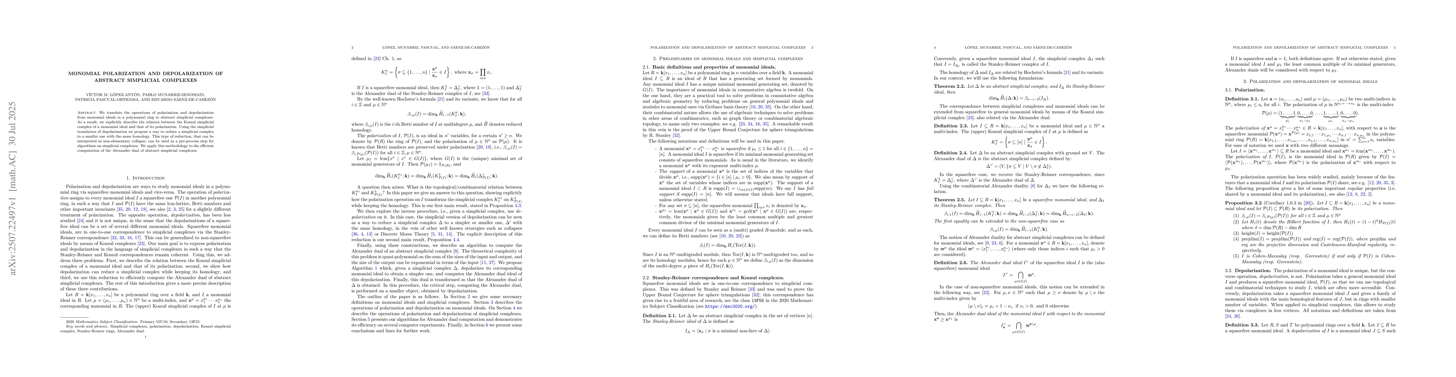 The work bridges the gap between monomial ideals and simplicial complexes, offering a fresh perspective on computational problems in algebraic topology through depolarization techniques.