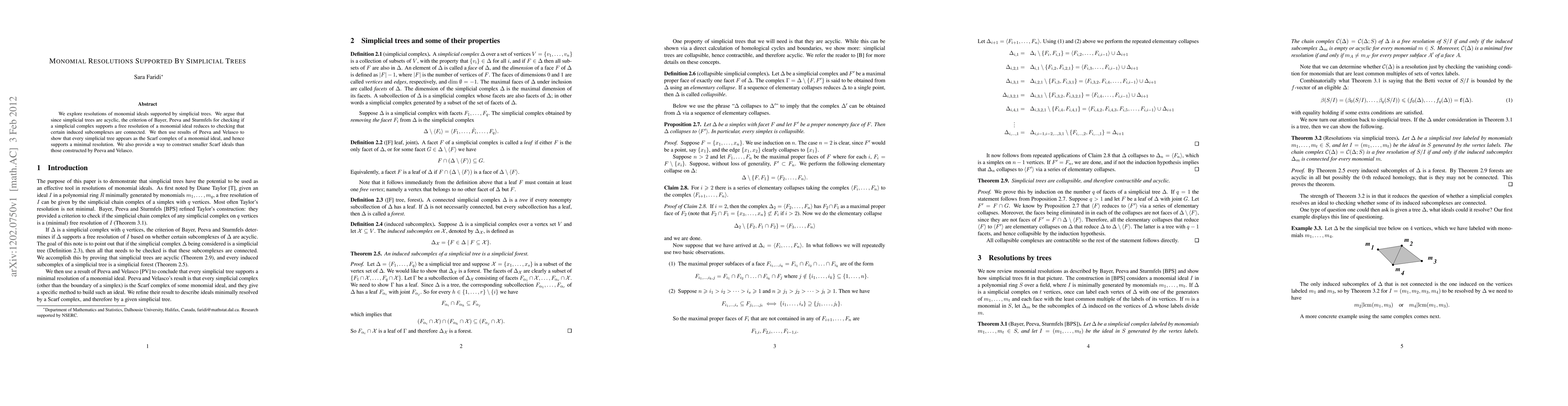 This paper investigates resolutions of monomial ideals supported by simplicial trees, demonstrating that their acyclicity simplifies Bayer, Peeva, and Sturmfels' criterion to checking connectivity of certain induced subcomplexes. It further shows that every simplicial tree can appear as the Scarf complex of a monomial ideal, supporting minimal resolutions, and proposes a method to construct smaller Scarf ideals.