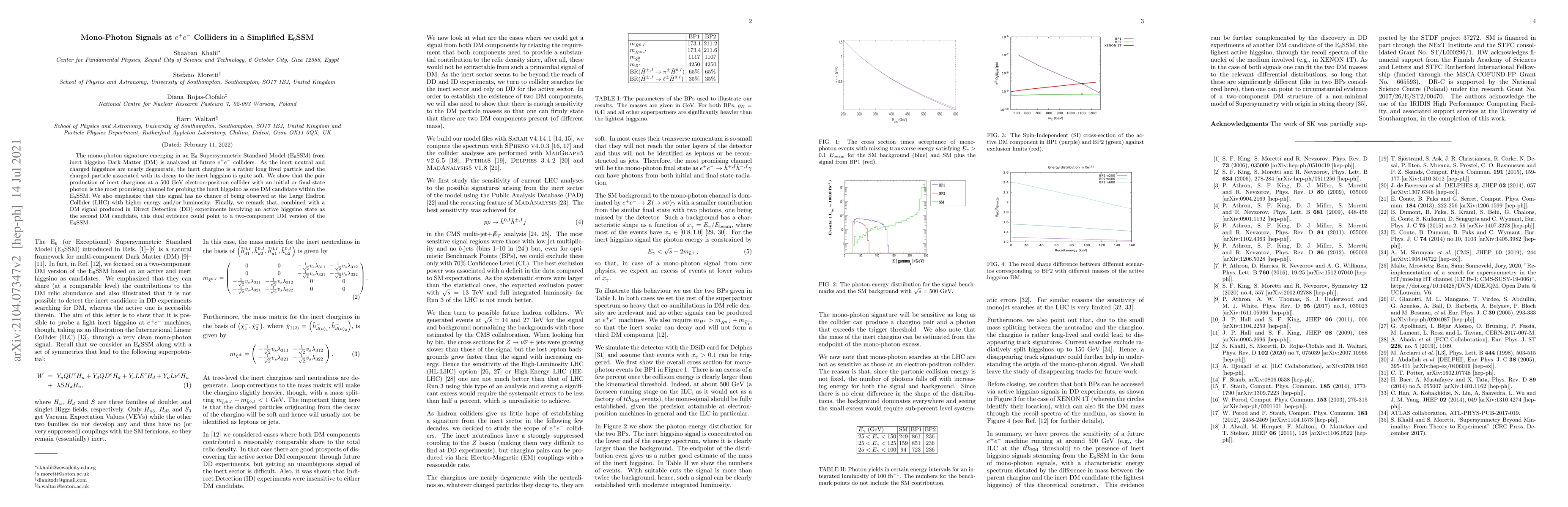 The mono-photon signature emerging in an E6 Supersymmetric Standard Model (E6SSM) from inert higgsino Dark Matter (DM) is analyzed at future $e^+e^-$ colliders. As the inert neutral and charged higgsinos are nearly degenerate, the inert chargino is a rather long lived particle and the charged particle associated with its decay to the inert higgsino is quite soft. We show that the pair production of inert charginos at a 500 GeV electron-positron collider with an initial or final state photon is the most promising channel for probing the inert higgsino as one DM candidate within the E6SSM. We also emphasize that this signal has no chance of being observed at the Large Hadron Collider with higher energy and/or luminosity. Finally, we remark that, combined with a DM signal produced in Direct Detection experiments involving an active higgsino state as the second DM candidate, this dual evidence could point to a two-component DM version of the E6SSM.