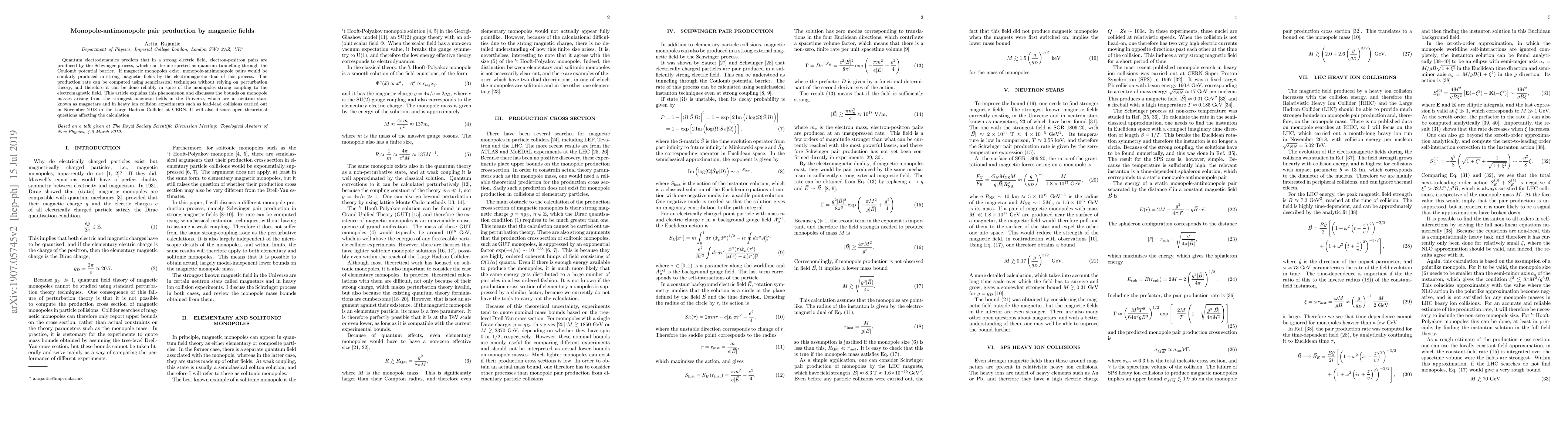 This paper explores the production of monopole-antimonopole pairs in strong magnetic fields, analogous to the Schwinger process in strong electric fields, and computes the production rate using semiclassical techniques. It discusses the implications of this phenomenon for the masses of monopoles and examines the strongest magnetic fields found in neutron stars and heavy ion collisions.