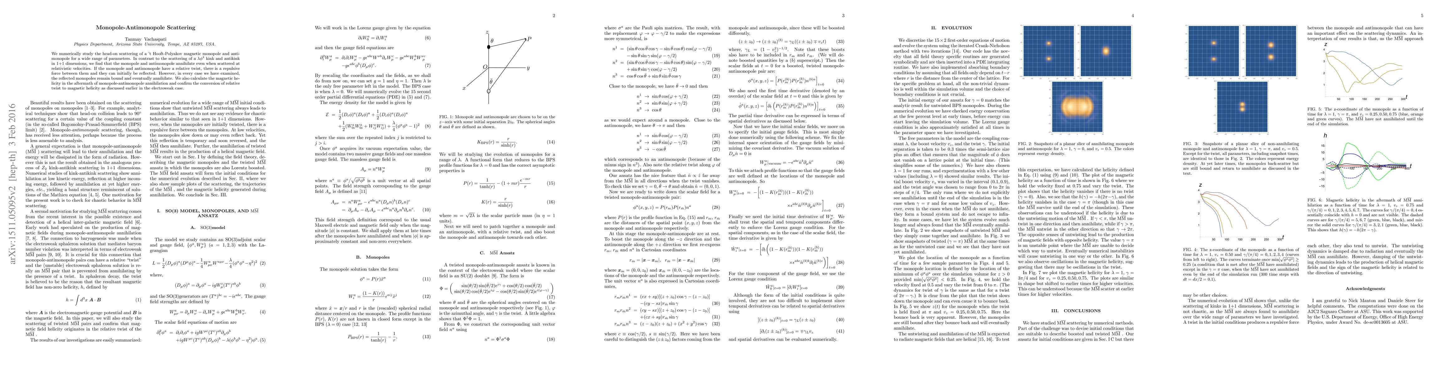 This paper numerically investigates the scattering of 't Hooft-Polyakov magnetic monopoles and antimonopoles, finding that they always annihilate, even at relativistic speeds. When a twist is present, a repulsive force may initially reflect them, but they remain bound and eventually annihilate, converting relative twist into magnetic helicity.