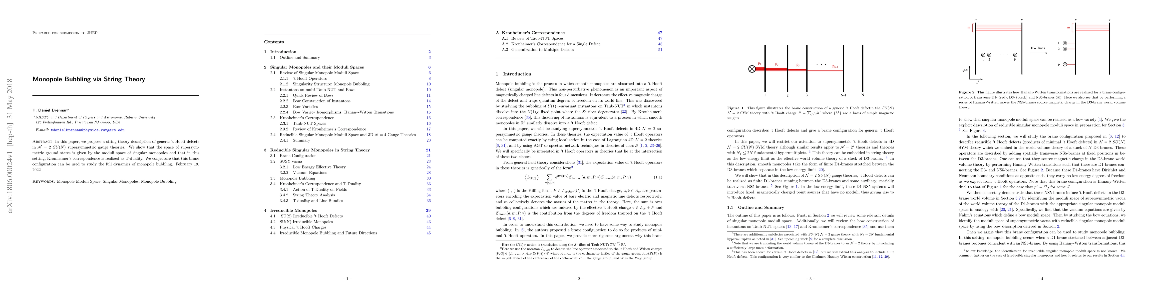 The paper introduces a new string theory description of 't Hooft defects, linking them to singular monopoles via T-duality and Kronheimer's correspondence.