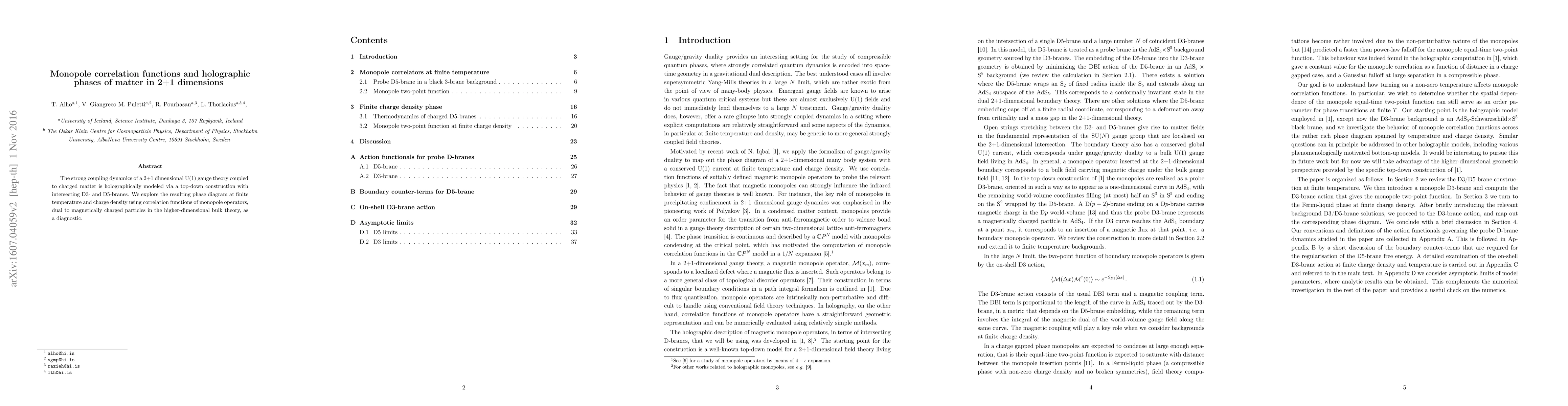 Researchers model a 2+1 dimensional gauge theory using intersecting branes to study phase transitions at finite temperature and charge density through monopole correlation functions, revealing holographic phases of matter.