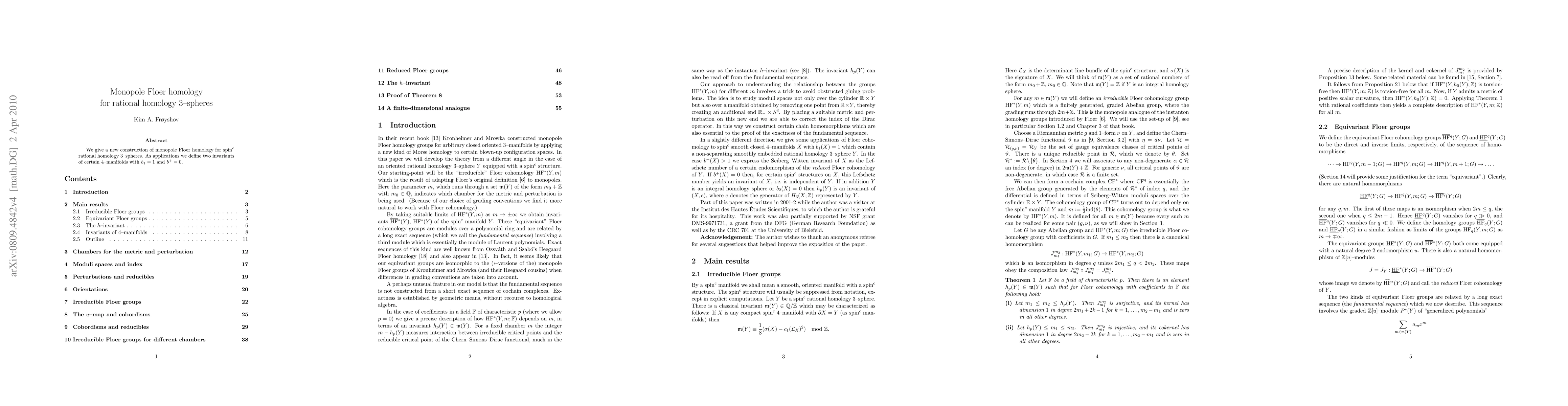 Summary: This paper introduces a novel construction of monopole Floer homology for spin-c rational homology 3-spheres and utilizes it to define invariants for specific smooth compact 4-manifolds with particular intersection form properties.