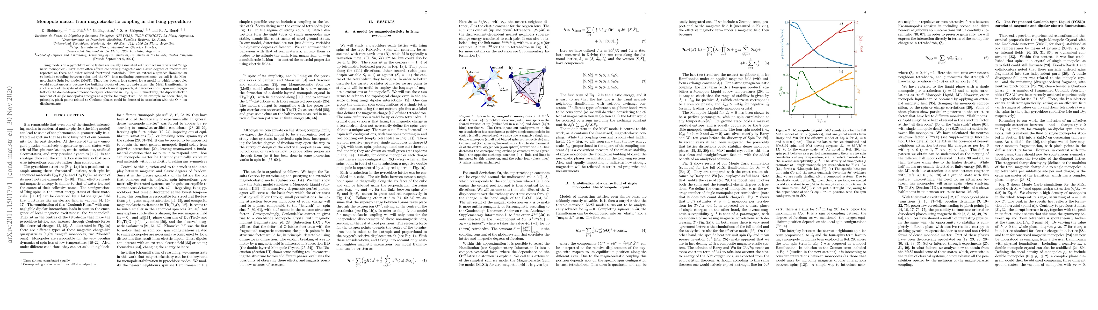 Ising models on a pyrochlore oxide lattice are usually associated with spin ice materials and "magnetic monopoles". Ever more often effects connecting magnetic and elastic degrees of freedom are reported on these and other related frustrated materials. Here we extend a spin-ice Hamiltonian to include coupling between spins and the O$^{-2}$ ions mediating superexchange; we call it the Magnetoelastic Spin Ice model (MeSI). There has been a long search for a model in which monopoles would spontaneously become the building blocks of new ground-states: the MeSI Hamiltonian is such a model. In spite of its simplicity and classical approach, it describes (both spin and oxygen lattice) the double-layered monopole crystal observed in Tb$_2$Ti$_2$O$_7$. Remarkably, the dipolar electric moment of single monopoles emerges as a probe for magnetism. As an example we show that, in principle, pinch points related to Coulomb phases could be detected in association with the O$^{-2}$-ion displacements.