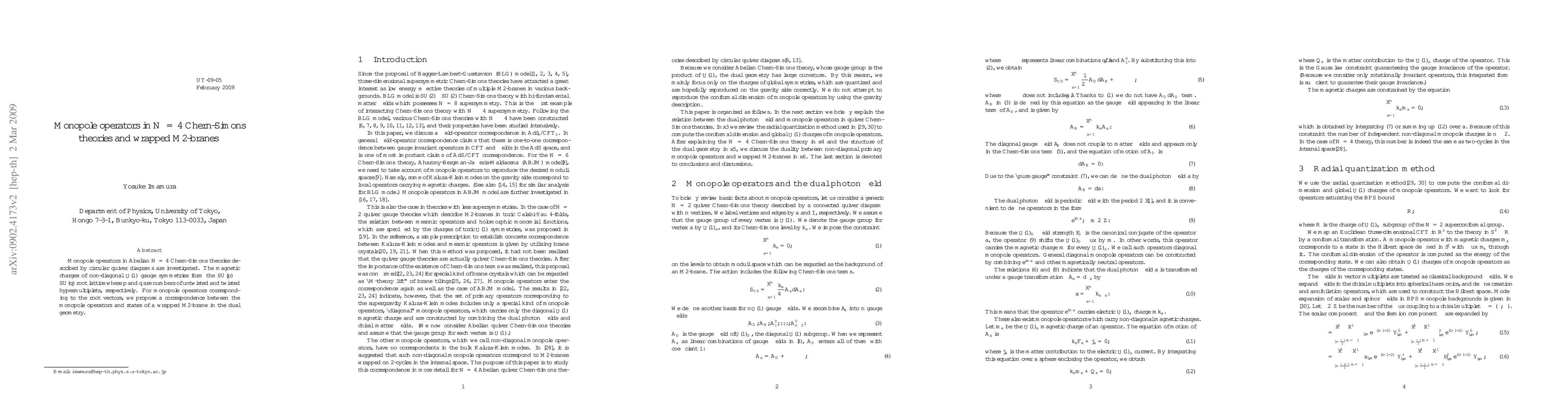 This paper investigates monopole operators in Abelian N=4 Chern-Simons theories, correlating their magnetic charges to the SU(p)xSU(q) root lattice. It proposes a link between these monopole operators and states of a wrapped M2-brane in the dual geometry.